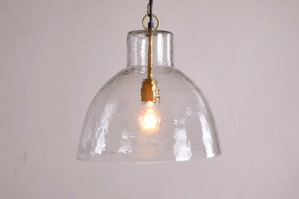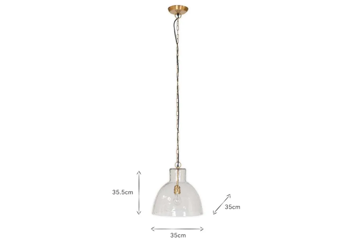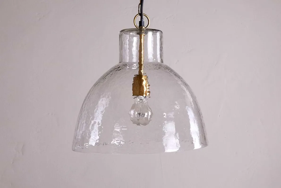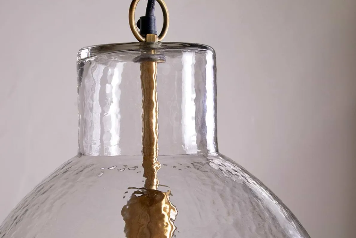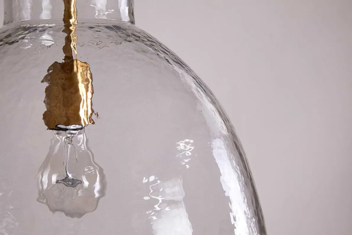 Inayah takes industrial lighting design and reimagines it for a contemporary living space, creating a clean aesthetic that acts as a focal point to a kitchen or dining space. A striking yet understated piece, the shade is made from recycled glass, allowing the inner workings of the lamp to be displayed and showcasing the beautifully made antique brass details within, as well as the woven flex and chain that supports the light – altogether making an impact through these considered design details.