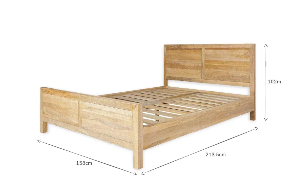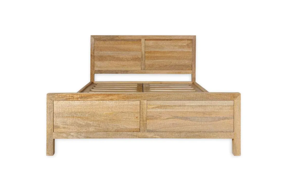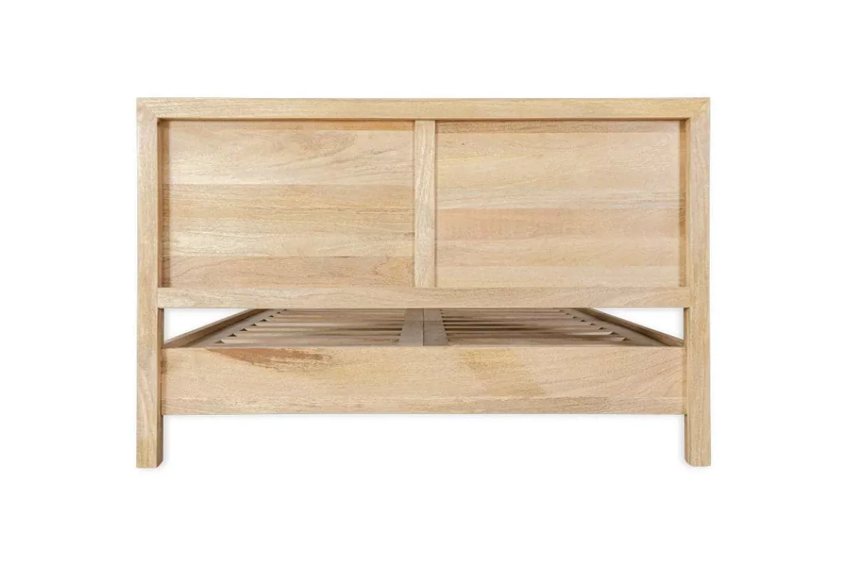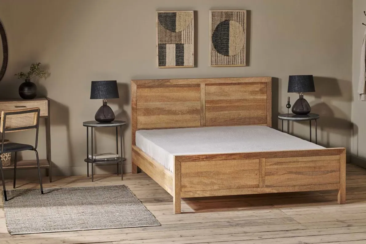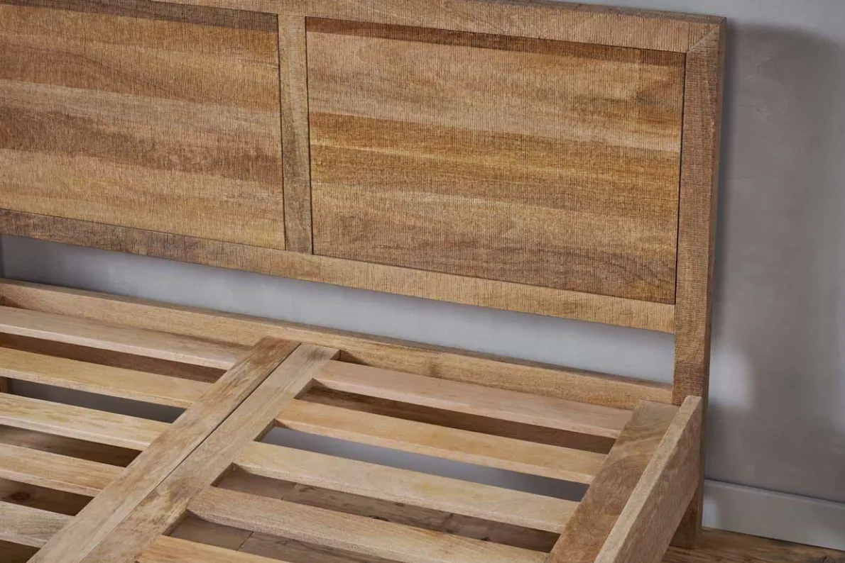 Our Indali bed has a beautifully simple yet timeless silhouette. The clean lines of the joinery enhance the beautiful natural wood, which is rich in organic detail and texture. Its well-designed and robust, with a generous headboard and understated aesthetic which suits any bedroom scheme. This bed is crafted from mango wood, whereby the trees are only cut down once they have stopped bearing fruit.