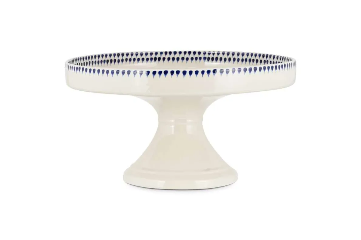 This elegant Indigo Drop ceramic stand is a new addition to our simple yet striking, bestselling ceramics range. The hand painted indigo teardrop details on the interior rim make this piece a lovely addition to any table setting. This stand makes a striking centrepiece, perfect for displaying cakes and sweet treats, but equally would work well as an elevated cheese platter. The simple, sturdy design makes this an understated and timeless classic that fits with ease into any kitchen style.