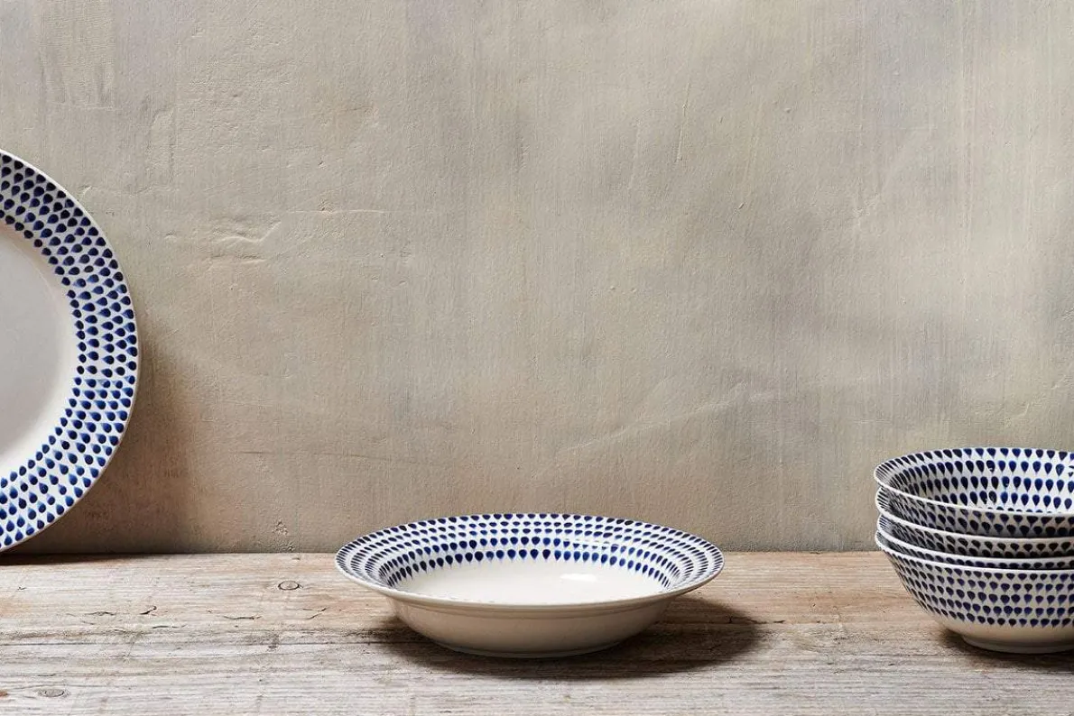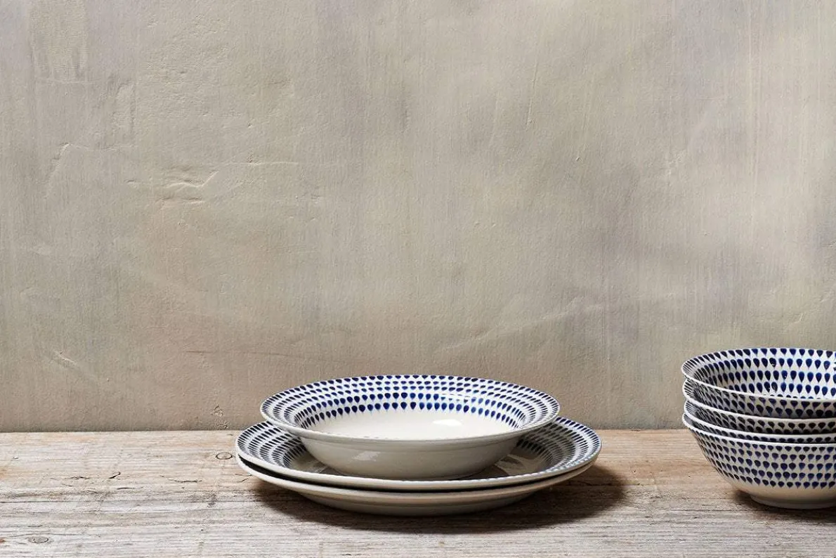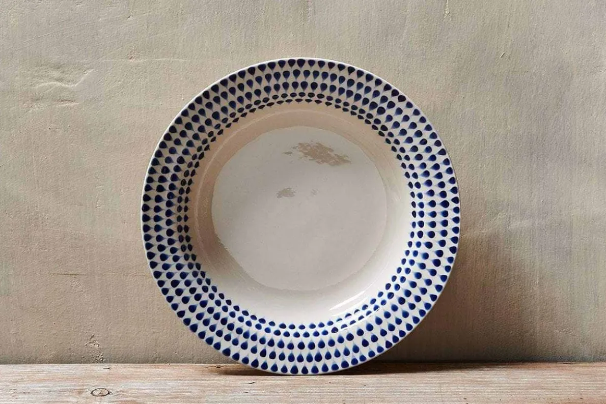 The Indigo drop pasta bowl is perfectly designed for serving and enjoying pasta. The deep base is enhanced by the wide level rim, beautifully decorated with our signature indigo drop design. Each bowl has been handmade using a traditional potters wheel, and the Indigo drop design is skilfully handpainted.