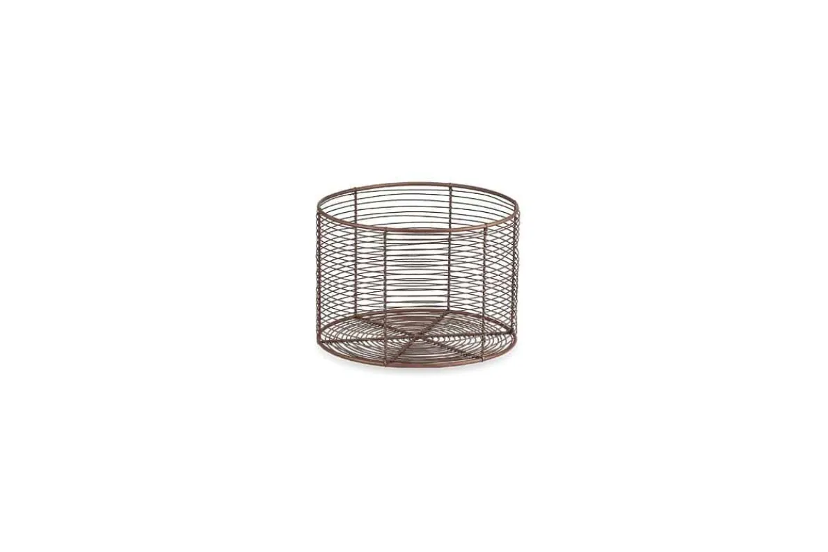 The cylindrical shape of our Inkollu Basket is ideal for a variety of storage and display from utensils to fruit & vegetables. The baskets are sculptured from wire and finished in a warm aged brass hue.