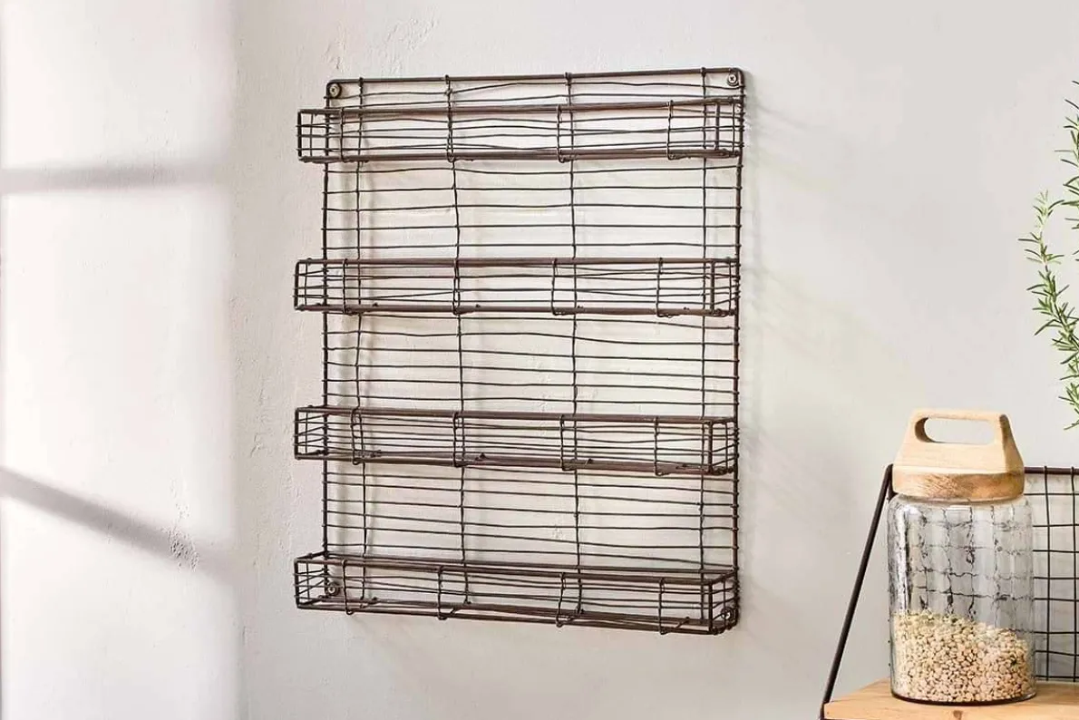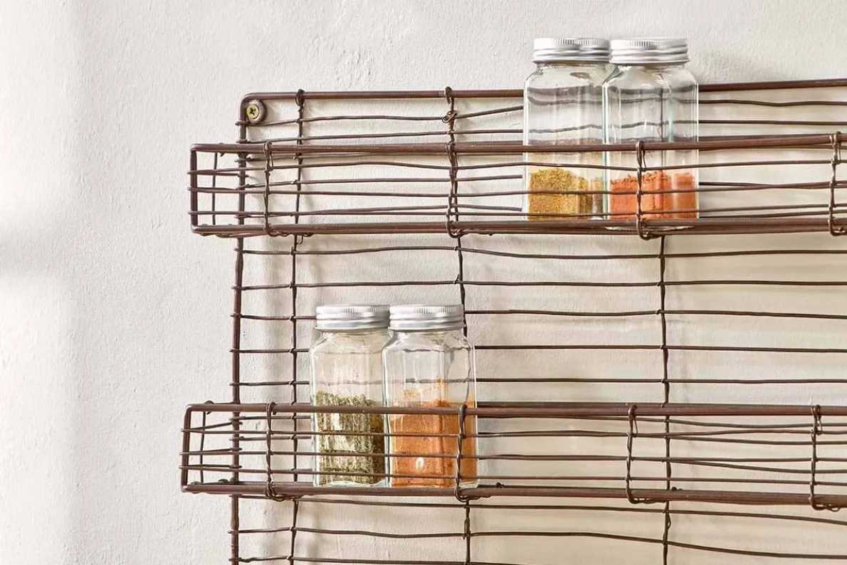 Bring order to your pantry with our Inkollu spice rack. The aged brass tone of the wire gives this functional rack warmth and interest. The four practical shelves are ideal for displaying all your herbs and spices, so you’ll no longer need to rummage around in the back of the cupboard for them. The Inkollu spice rack has practical screw holes on each corner, so it’s easy to attach to a wall.