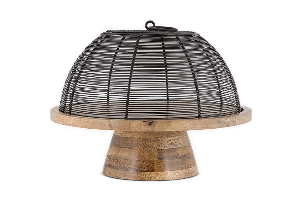 A simple, timeless design, the aged brass wire and mango wood Inkollu cake stand keeps cakes and treats protected for perfect alfresco summer dining. The industrial aesthetic of the metal dome contrasts with the warm hues of the mango wood base to create a strong yet simple silhouette; ideal for relaxed celebrations and special occasions alike. Sturdy and reliable, this piece combines functionality and style and fits seamlessly with all tableware. An added benefit of using wire for the design of this piece, is that it is easy to wipe down and keep clean. Part of the Inkollu kitchen range.