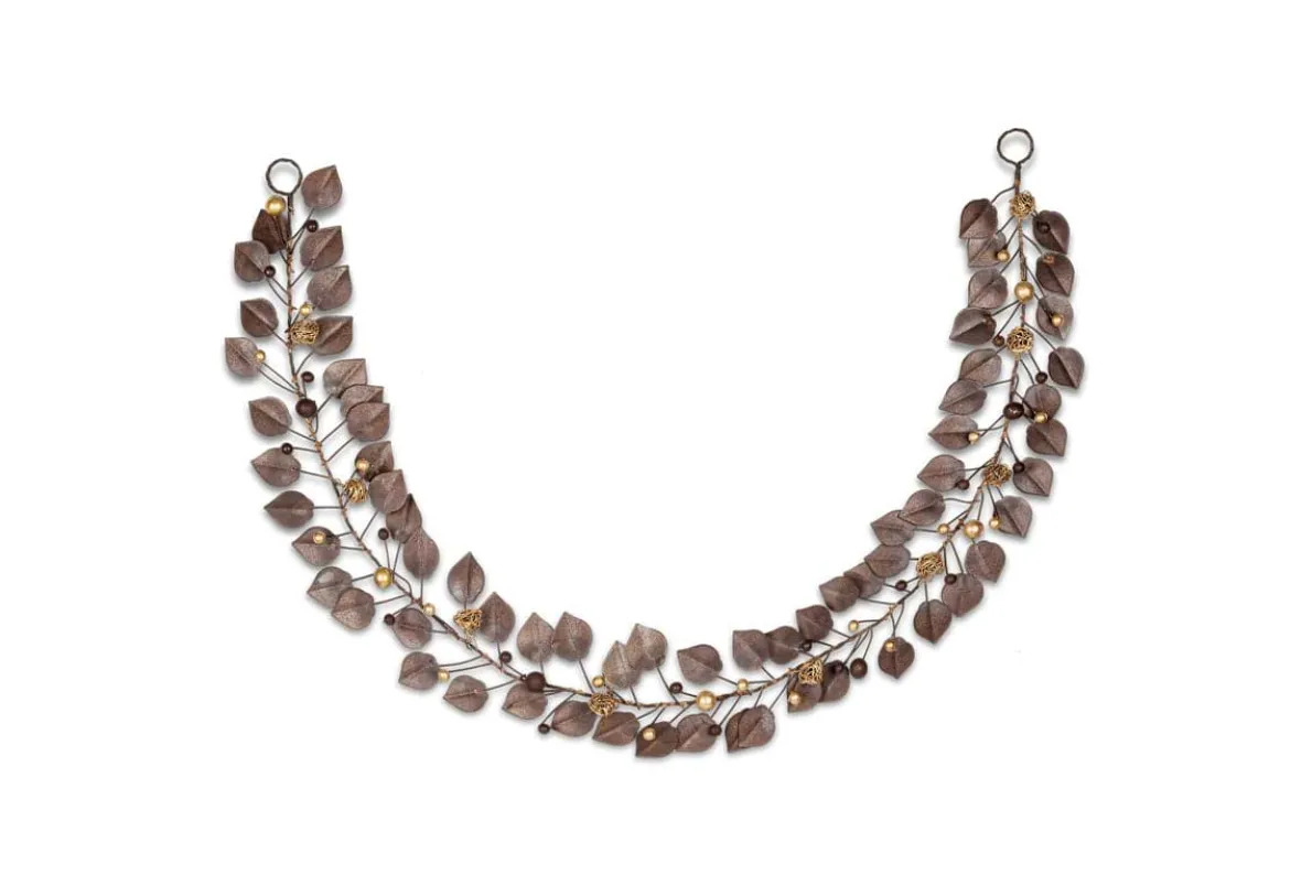 New for this 2024 season, our Ishana Wreath in a rust finish offers statement decoration for your door or festive table centrepiece. Made from delicately moulded leaves arranged around a stem with an assortment of berries in various sizes and shades of complementary gold and bronze, it is an understated yet striking piece that gives an instant festive feel to your decor. The beauty of this piece also lies in the fact it can be packed away and brought out year after year. Suitable for outdoor use, but best positioned in a sheltered doorway or nook.