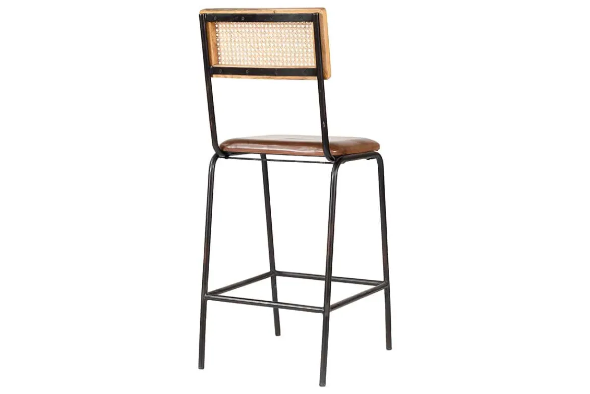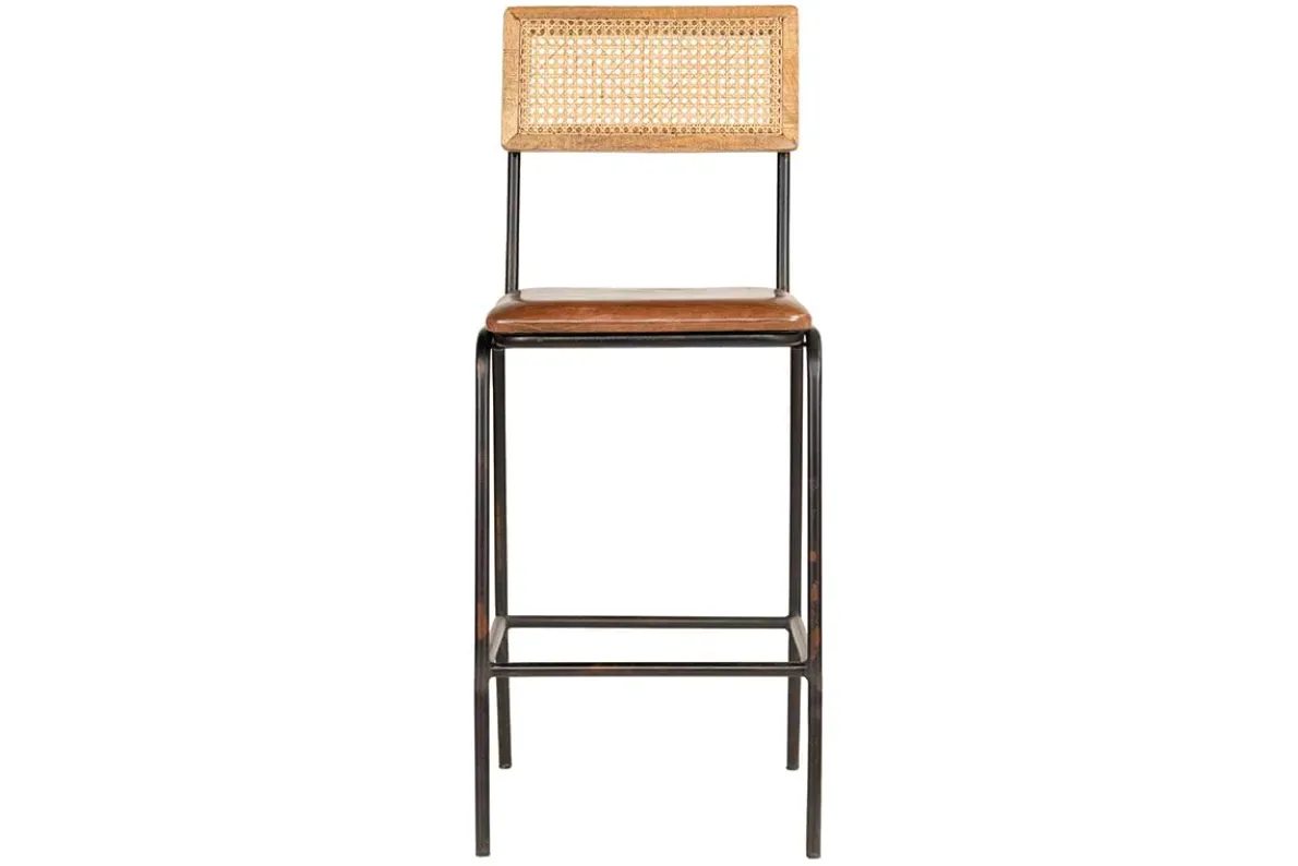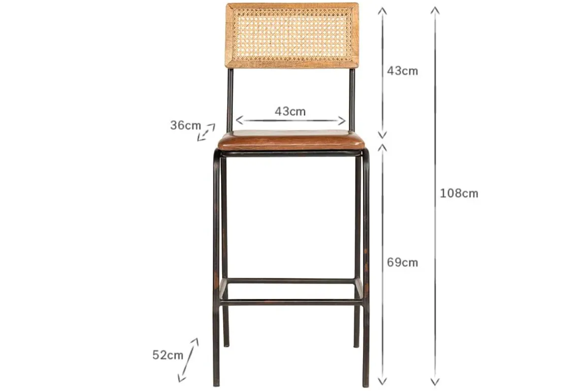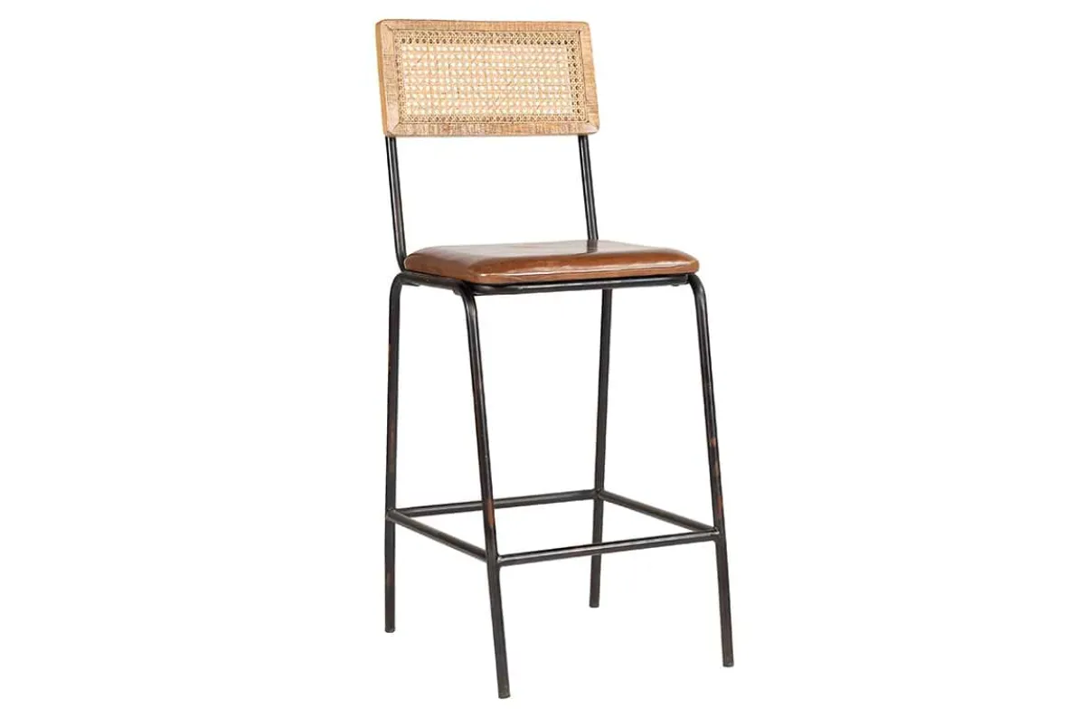 The Iswa counter chair combines a natural woven cane back with tactile tanned goat leather. This comfortable counter-height stool benefits from a soft padded seat complemented by the delicate detailing of the cane back, framed in the warm natural tones of mango wood. When we are designing our counter stools we always consider the view from the back of the chair, as often they are tucked under a kitchen island, and the cane detailing on the reverse of the Iswa chair adds an appealing detail.