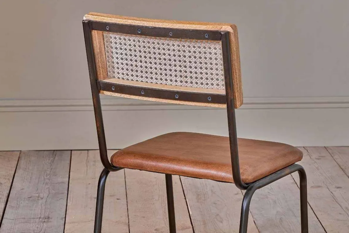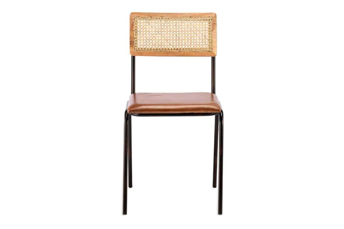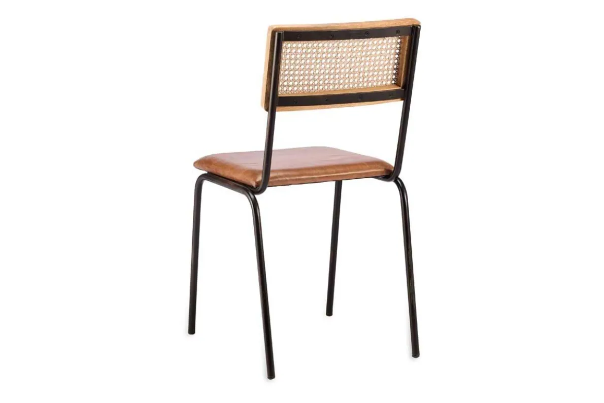 This striking leather and rattan Iswa dining chair combines rich leather and woven rattan. The tanned leather seat provides comfort and style, whilst the rattan offers a light natural touch that is well-suited to a kitchen space. The rattan back is framed with a natural sustainable mango wood surround, and the legs and supporting framework are crafted from long-lasting iron, with a black finish. This chair would work well as a desk chair as well as being a kitchen and dining table staple, creating a luxurious utilitarian feel.