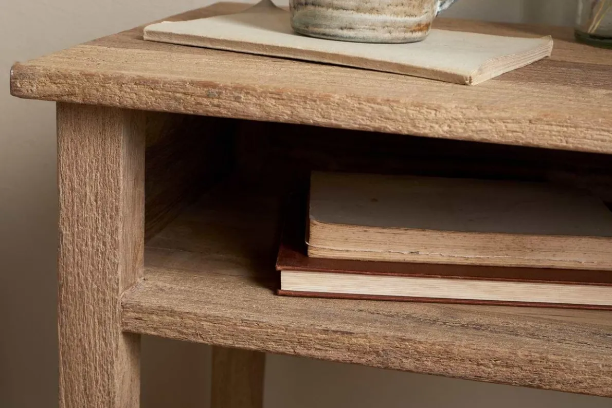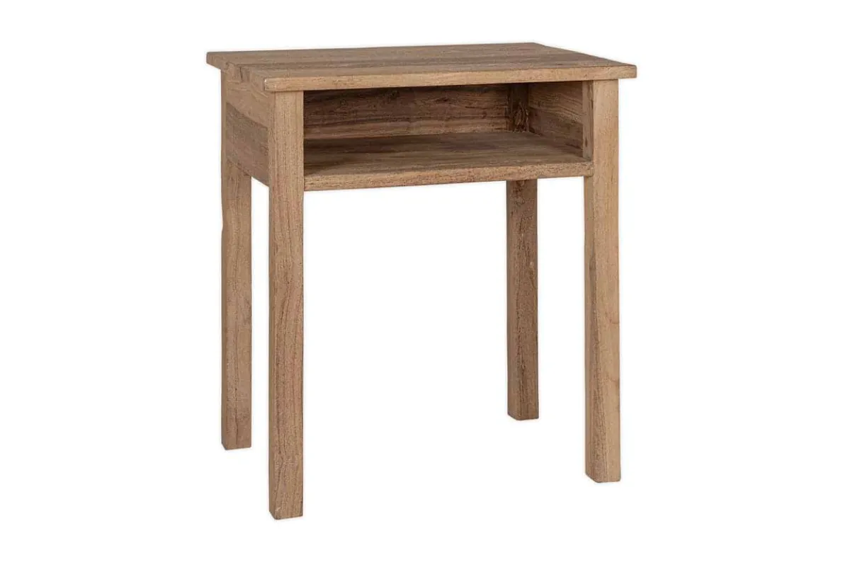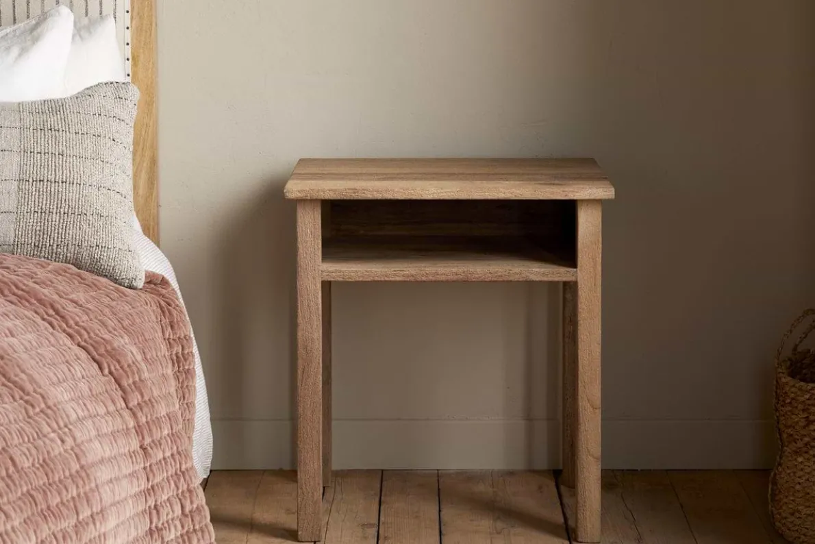 This bedside table offers a timeless, understated design with a solid, chunky structure that brings warmth and texture to any bedroom. Its simple form fits seamlessly into both rustic and contemporary spaces, with a spacious surface ideal for stacking books, notepads, or bedtime essentials. A practical and characterful piece that works beautifully beside any bed.