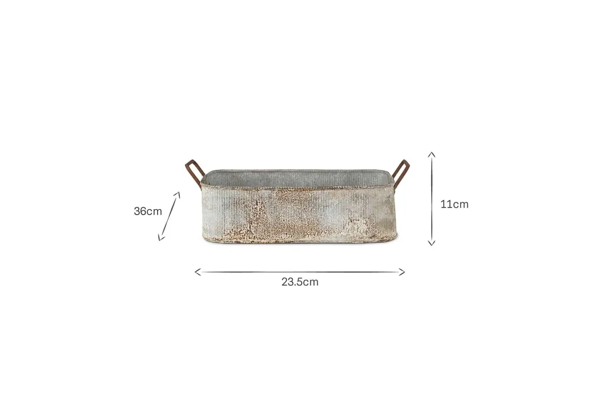 The Japos Outdoor Planter Tray boasts a versatile design perfect for planting directly, starting seedlings, or housing small potted herbs. It also functions beautifully as a stylish tray for serving drinks. Crafted with an aged zinc finish, it’s rustic look complements earthy, natural garden settings effortlessly. Practical and characterful, this planter tray makes a lovely addition to your outdoor space.