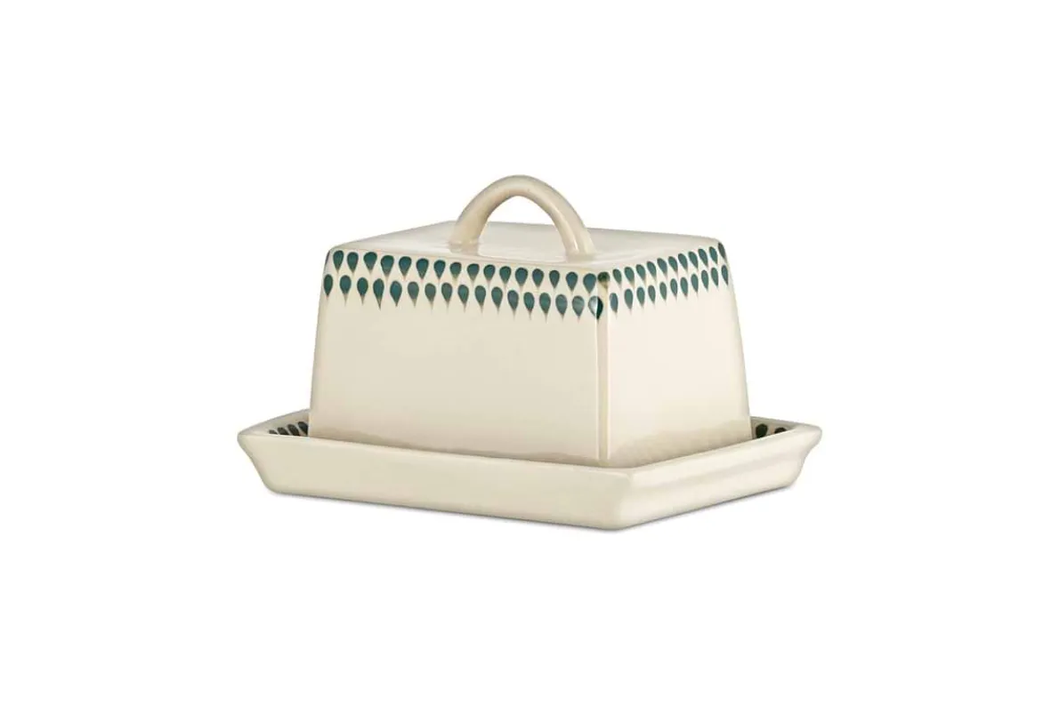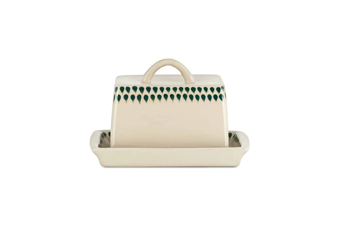 Bring a touch of pattern and natural colour to your morning table. The Juniper Drop butter dish features our signature green drop design and a smooth, compact form that keeps butter neatly covered and ready to serve. A subtle yet stylish addition to breakfast or brunch, it pairs beautifully with other pieces from the Juniper Drop collection.
