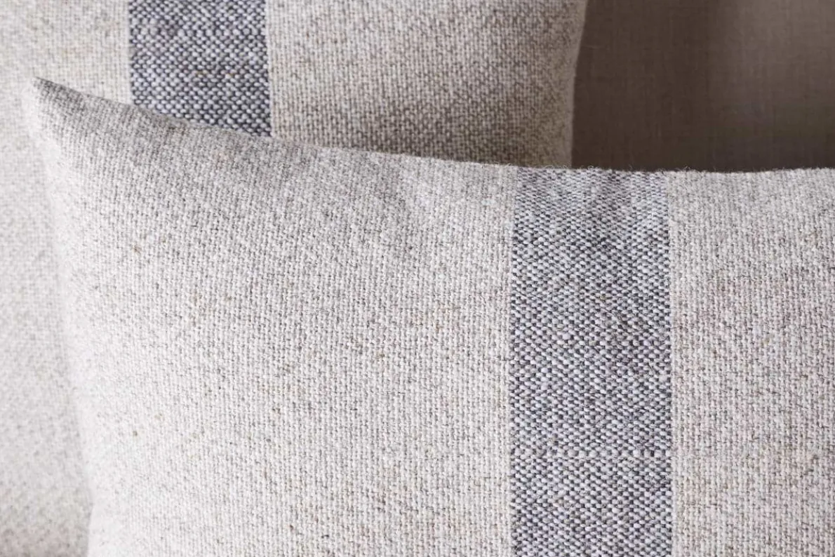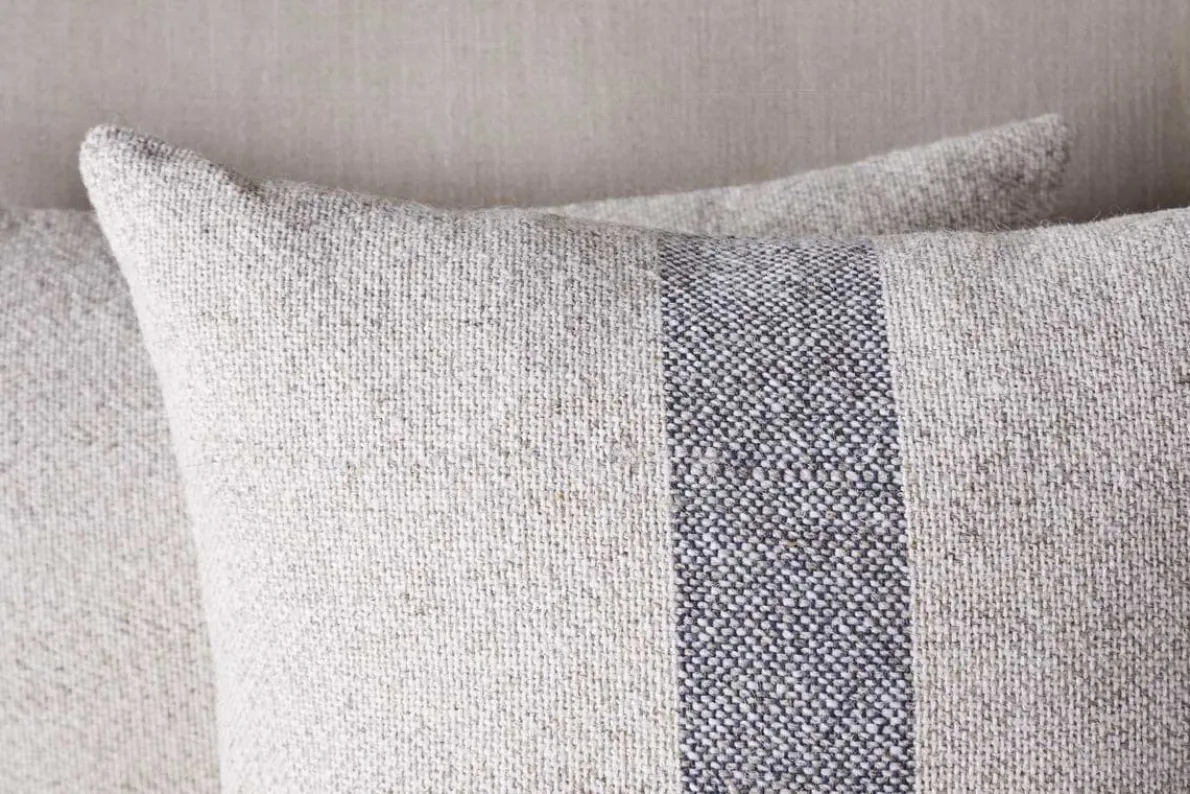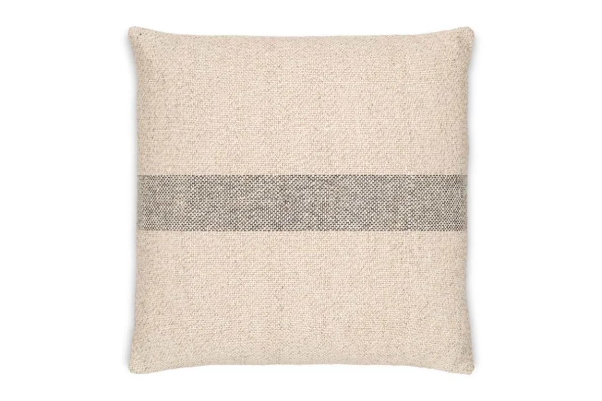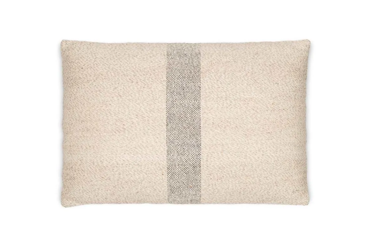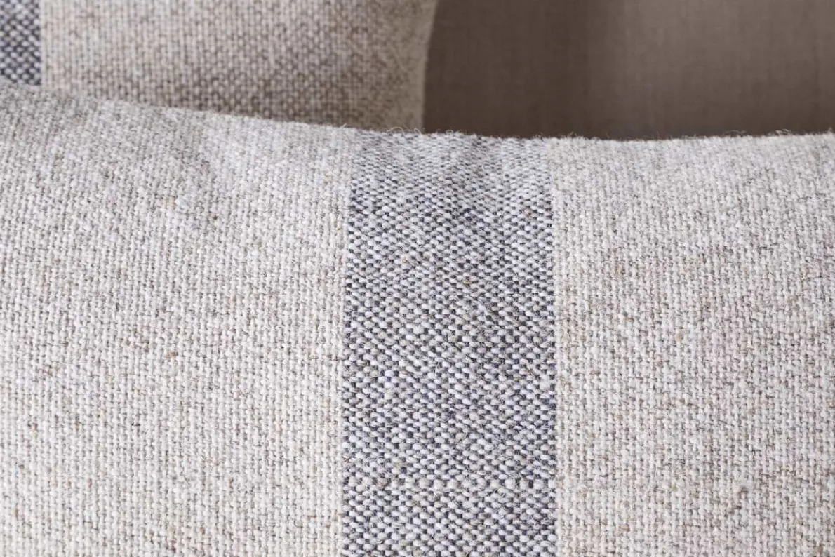 Woven from a tactile blend of wool and cotton, this cushion cover combines relaxed neutrals with a bold blue-grey stripe for striking contrast. The soft texture and understated palette create a laid-back, grounded feel, while the defined stripe adds just the right amount of visual interest. A versatile piece for effortless layering across sofas, chairs, or beds.
