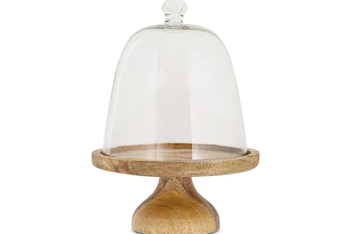 This Kannati stand offers an elegant and slimline way to display choice cheeses, but could equally house petits fours or cupcakes. Smaller than average, this is the perfect piece for when tablespace is limited while beautifully protecting culinary delights. Made for hassle-free alfresco summer dining, its attractive silhouette means it also works well throughout the year as a standalone piece with or without food. The stylishly shaped recycled glass dome fits snuggly and safely into the lip of the mango wood base.