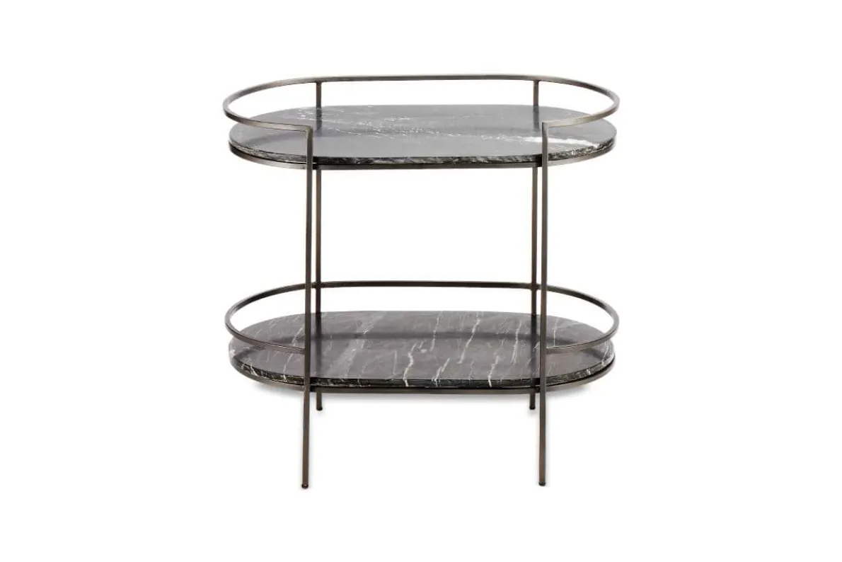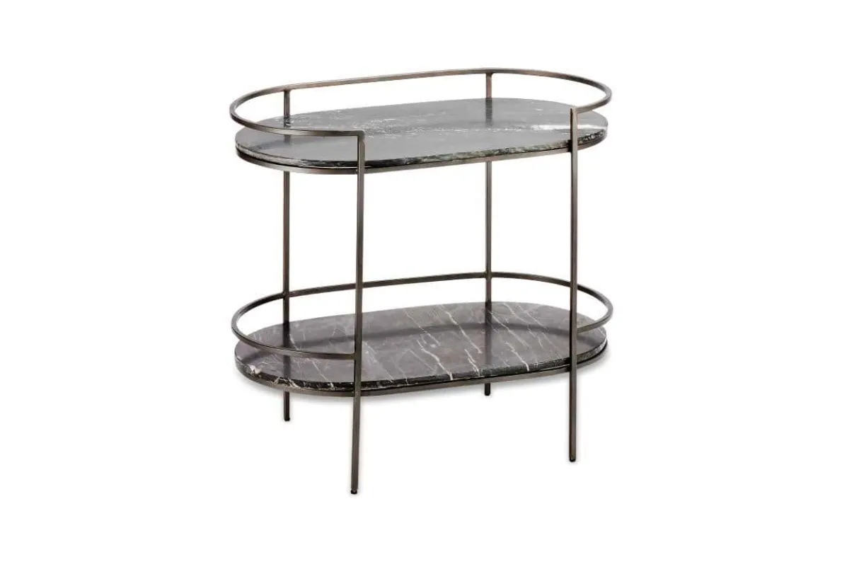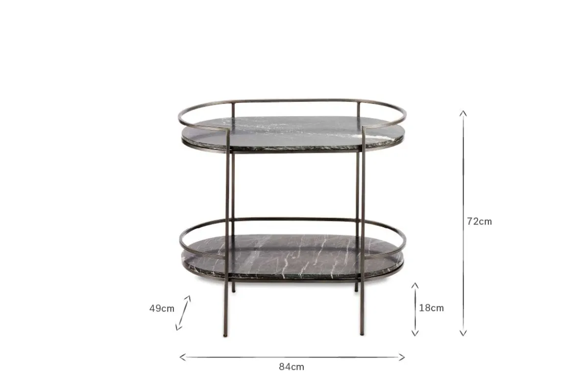 The Karoko marble drinks table is the perfect entertaining piece. The black marble top and lower shelf is crafted from solid marble. The natural marble varies from piece to piece providing each table with its own unique identity. The refined iron framework gives a striking edge. Style with drinks bottles and cocktail glasses.