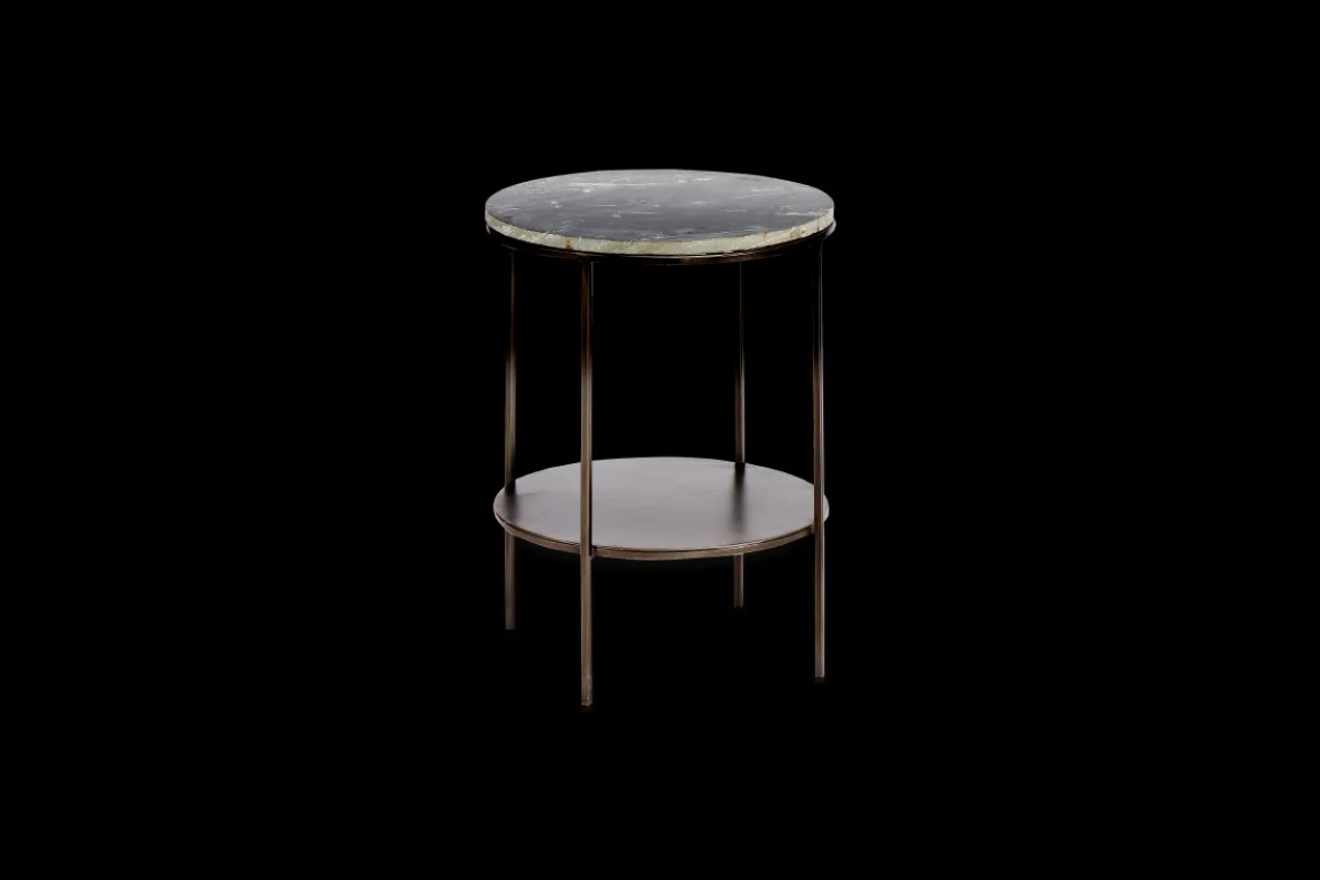 Our stylish Karoko side table makes a stylish and versatile addition to an interior. The black marble top is crafted from solid marble. The natural marble varies from piece to piece providing each table with its own unique identity. The refined iron framework gives a striking edge and the lower section offers practical storage for magazines and books.