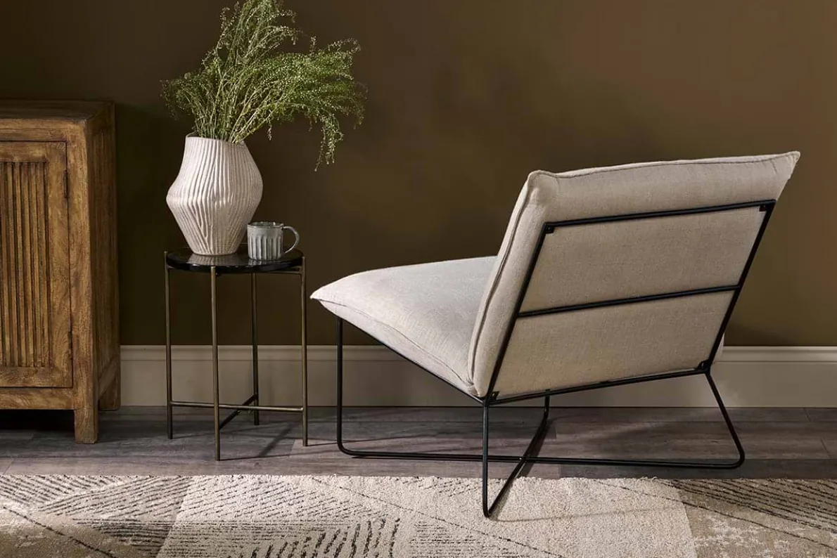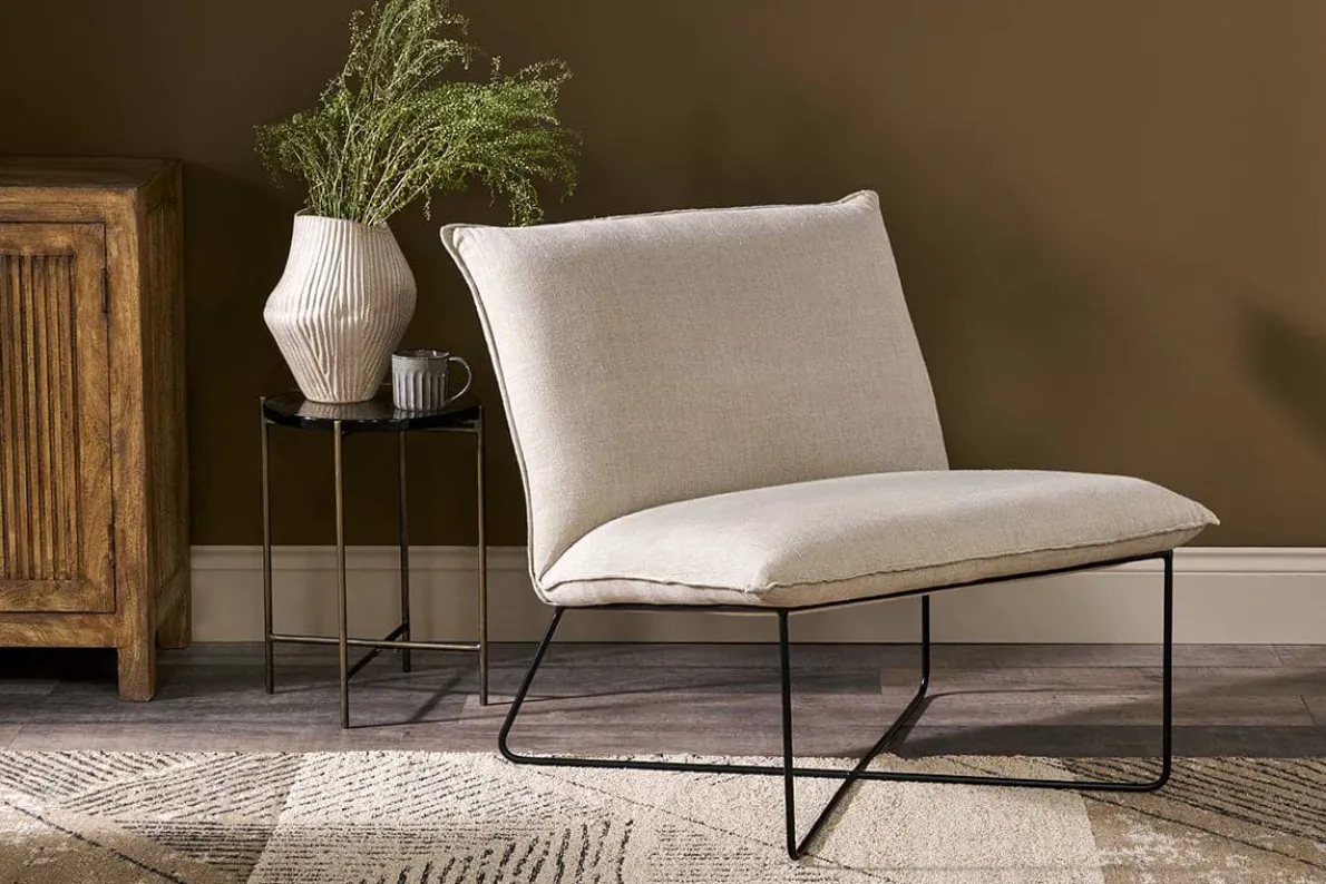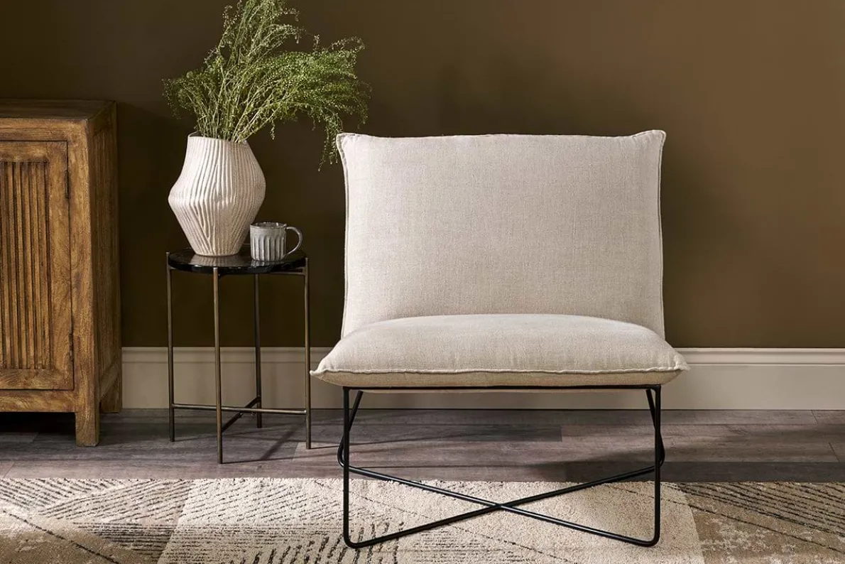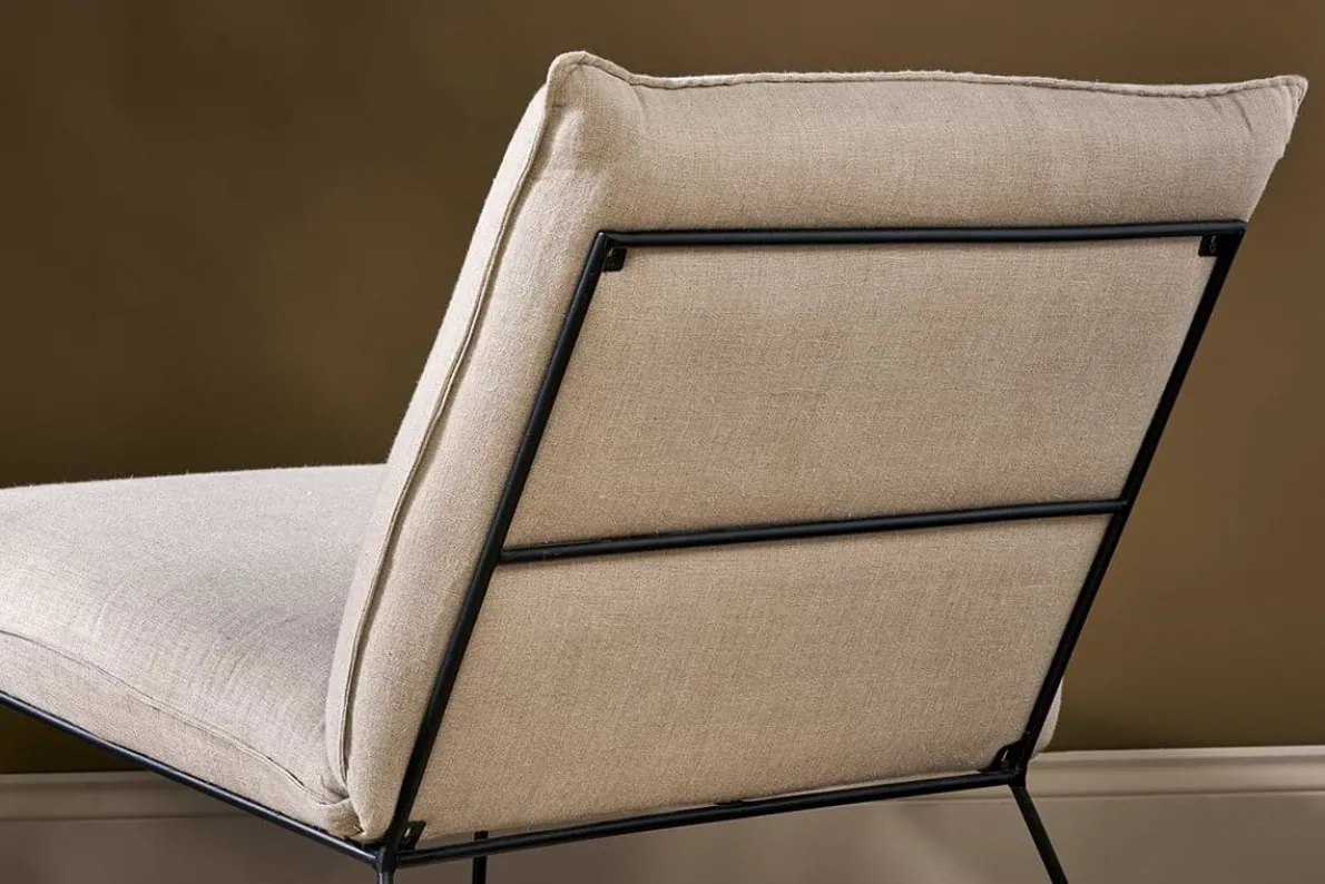 Generously proportioned, our Kashvi oversized lounger is designed to offer comfort and versatility with its contemporary design. Perfectly formed for relaxed lounging, the firm base and back are upholstered in natural textured linen, while the simple iron frame creates an elegant cross bar for a fresh, classic silhouette.