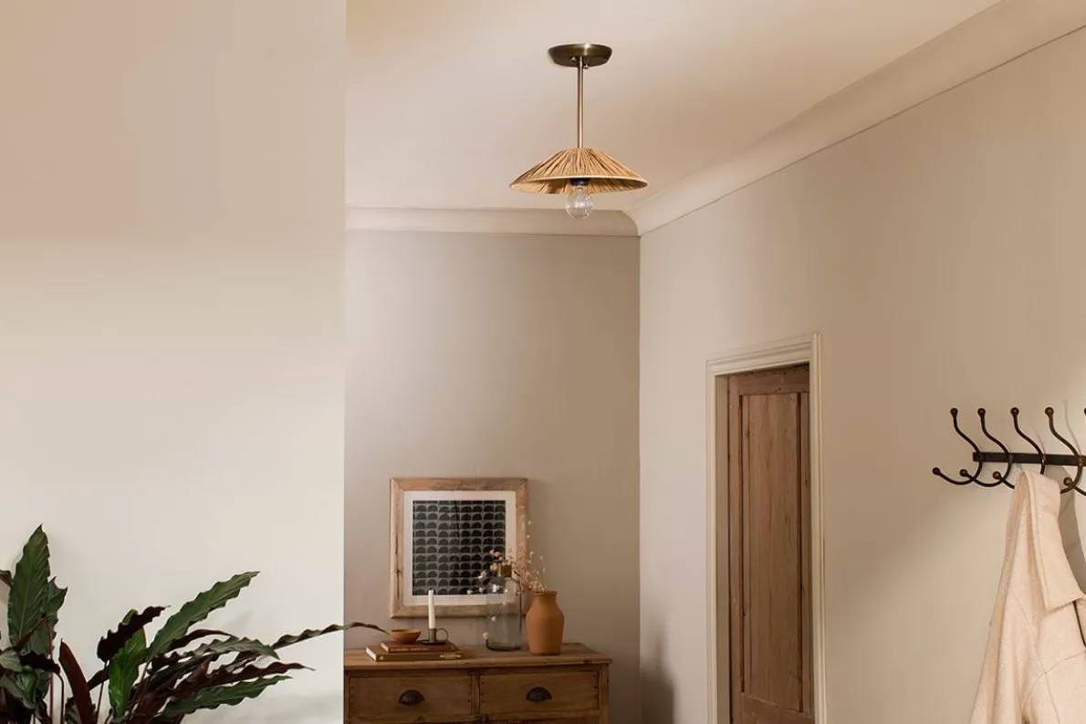 Our Katari ceiling light brings character and interest to any interior. Crafted from textured raffia and robust iron, the lamp shade’s construction and classic shape maximises the amount of light. The weave of the raffia creates small gaps which enhances the ambient glow, as well as adding an appealing tactile quality. A metal fitting in a warm antique brass finish completes the look, perfectly pairing with the natural palette of the raffia. Position this lamp in multiples over a kitchen island for a stylish display.