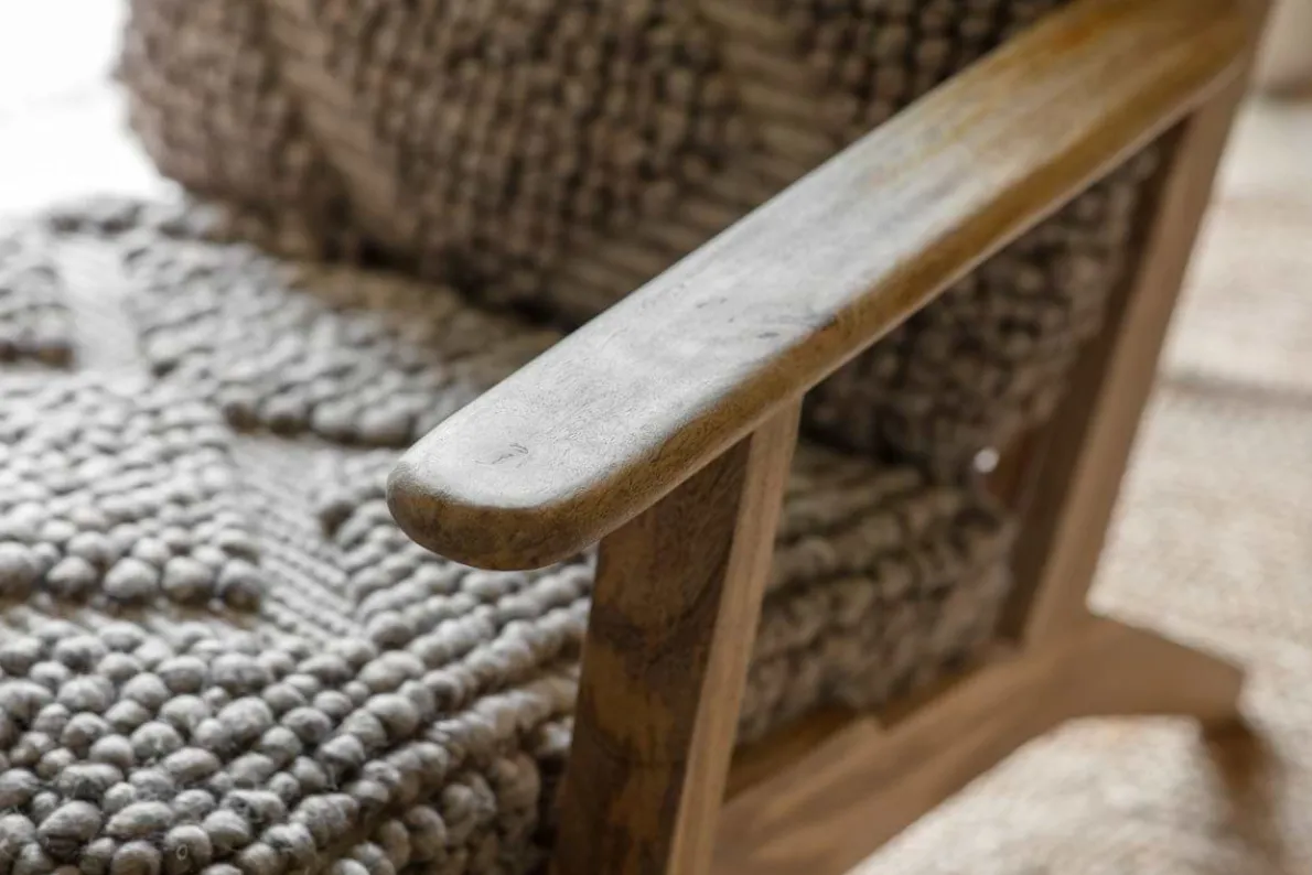 We are delighted with our new Keya Chair for the elegant simplicity of its silhouette that marries so beautifully with its contemporary and utterly irresistible chunky-weave wool upholstery. Supremely cosy; the two cushion pads have a subtle diamond design that adds an extra touch of detail to this timeless piece. This would work beautifully in the corner of a living space or bedroom as an occasional chair, or in a reading nook.