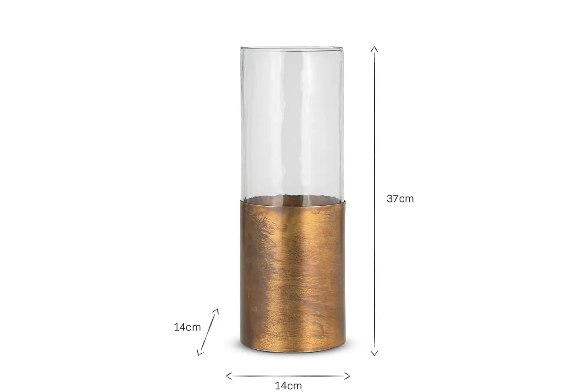 The simplicity of the Khila vase makes it the perfect design for displaying a generous bunch of flowers, allowing the beauty of the blooms to shine through. The wide opening and straight form, together with the pared-back look of the clear glass and the aged metal base creates a timeless piece that looks just as beautiful when not in use.