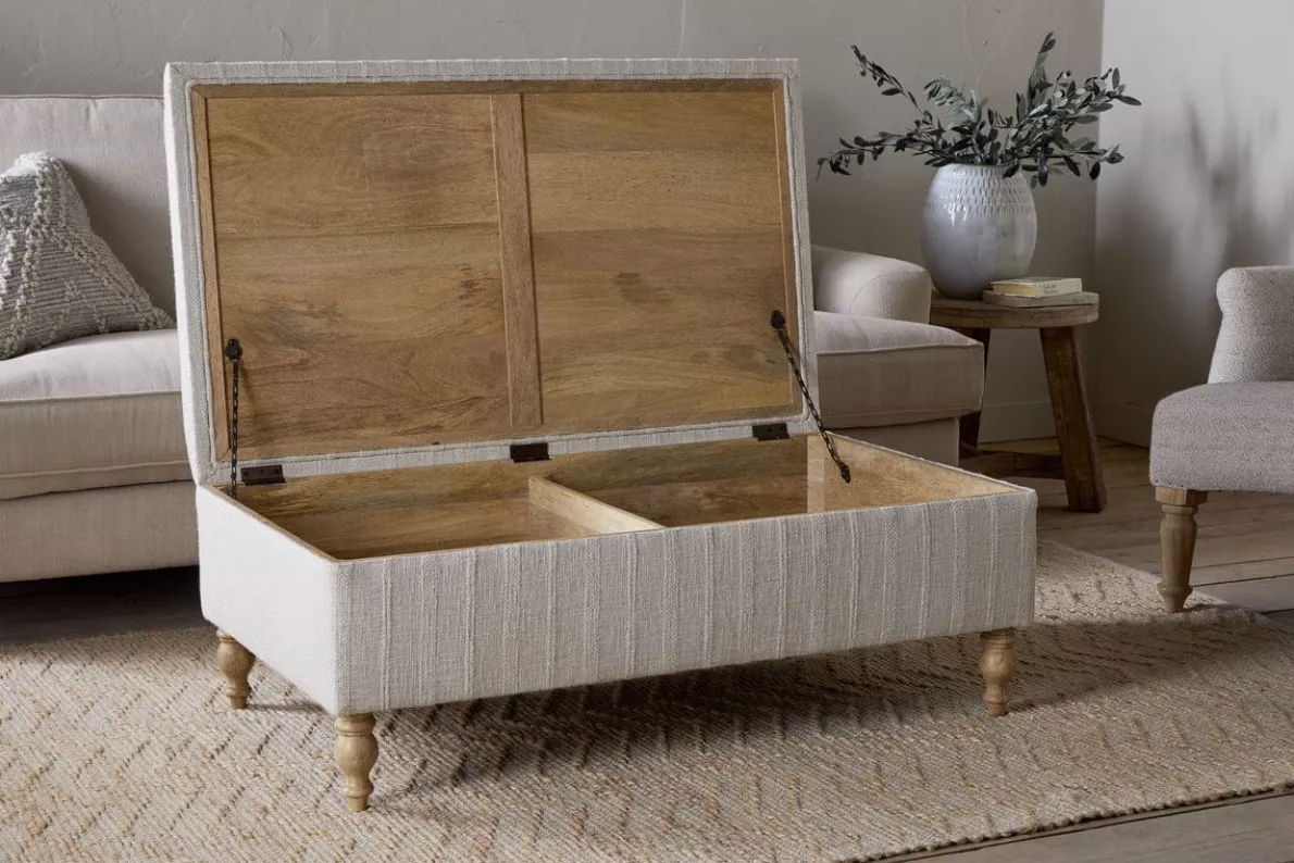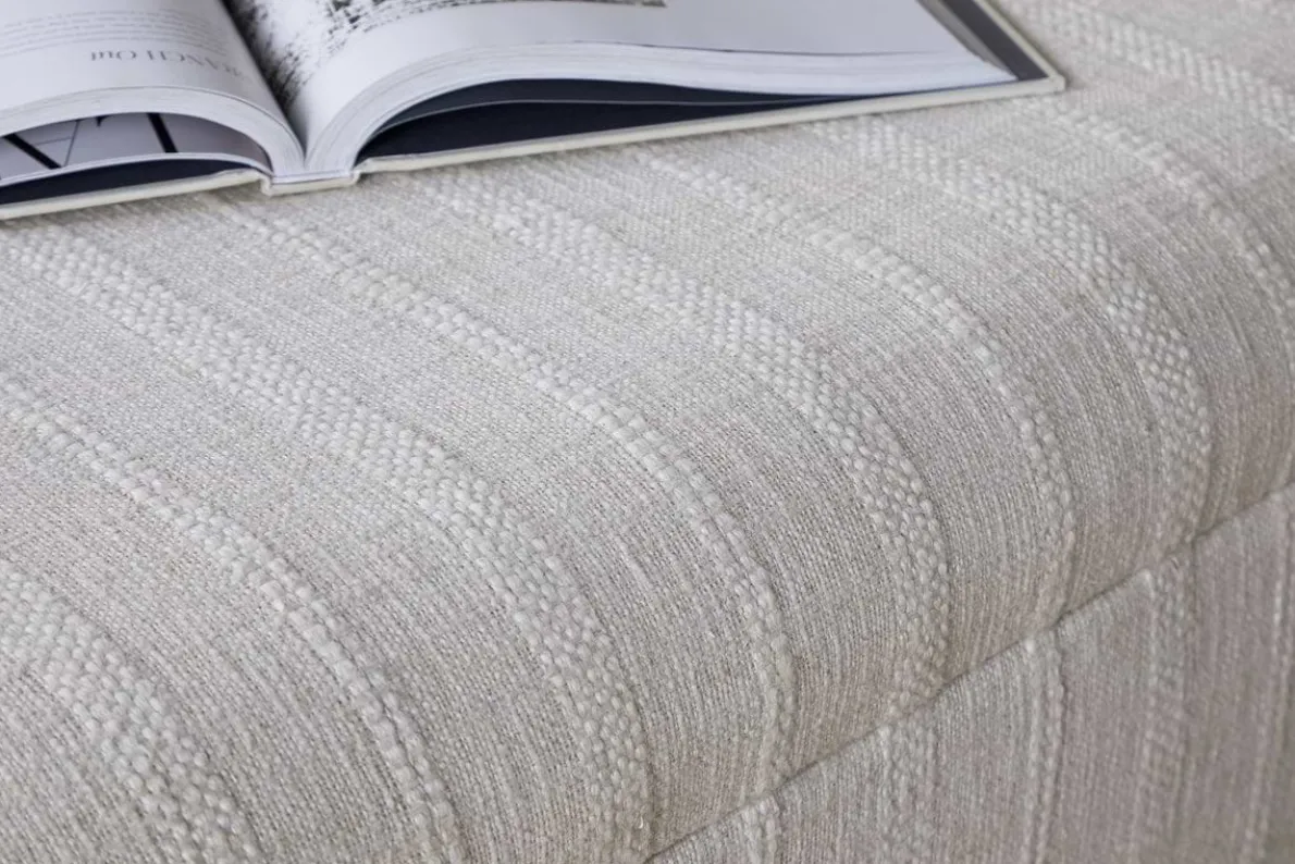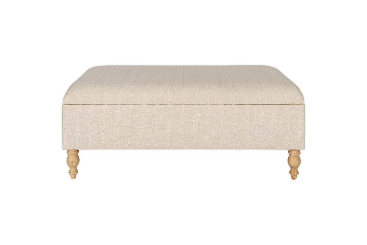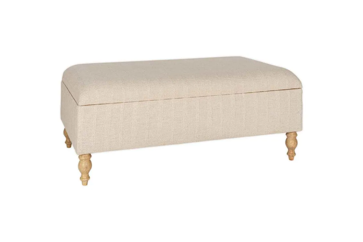 A practical and stylish addition to any living space, this storage ottoman is upholstered in a soft cotton and linen blend with a subtle stripe. Its generous interior is perfect for stowing away blankets, books, or everyday items, while the cushioned top doubles as a comfortable footrest or extra seat. Finished with elegant wooden legs, it-s a versatile piece that brings both form and function to your home.