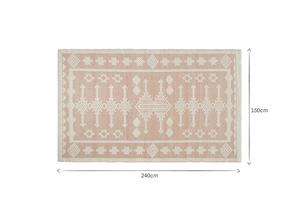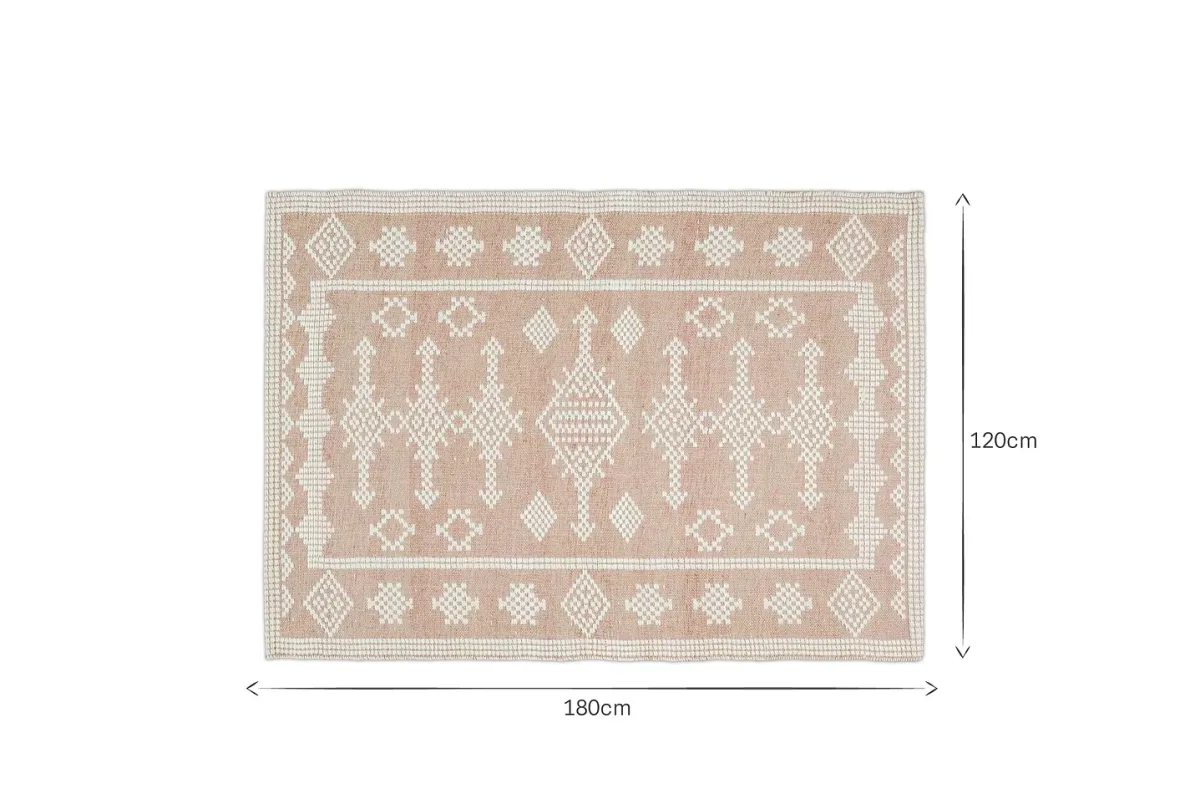 The perfect blend of comfort and style, our Kittale rug is handcrafted from soft wool and recycled materials, creating a sublime and cosy feel underfoot. Its traditional Indian design, made on a handloom, adds texture to your living space. The soft, distressed pale rose colour adds an ambient charm, making it a beautiful addition to your bedroom. Available in two sizes.