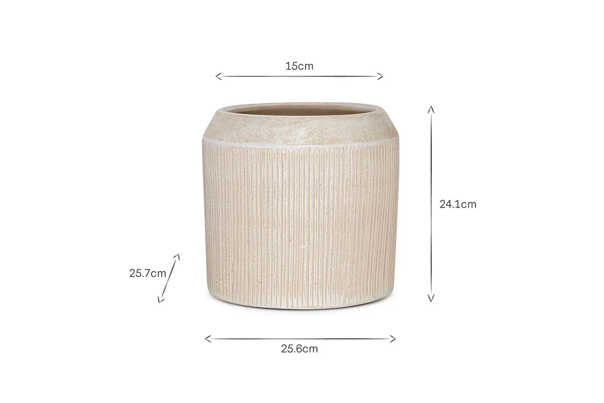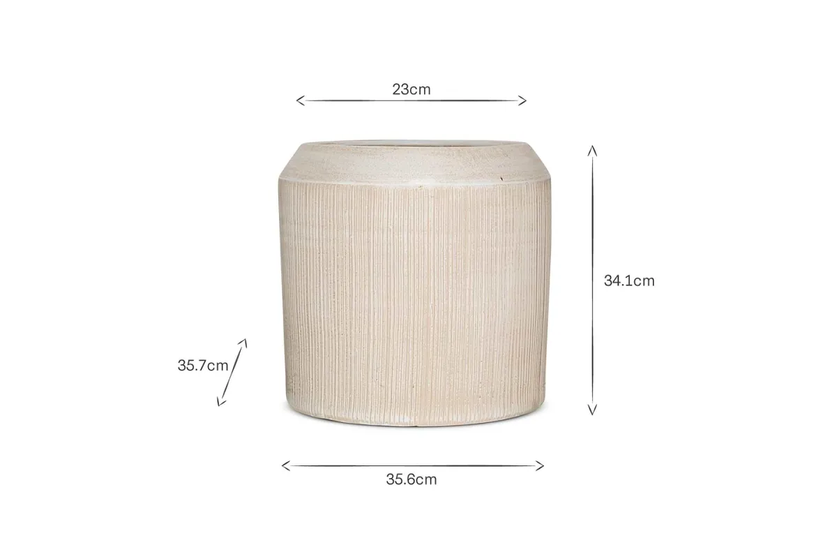 Our Kubo Ceramic Planter in cream is ideal for both indoor and outdoor use, complete with a convenient bung for indoor settings. Each planter is finished with a reactive glaze showcasing unique earthy tones that beautifully reflect nkuku’s signature style. With their subtle colours, these planters add warmth and texture to any space, while their versatile design complements various colour schemes. Available in two sizes and in a terracotta colour.