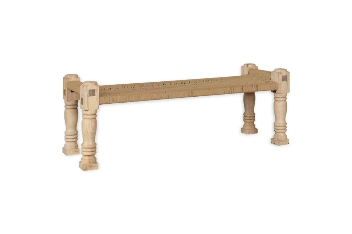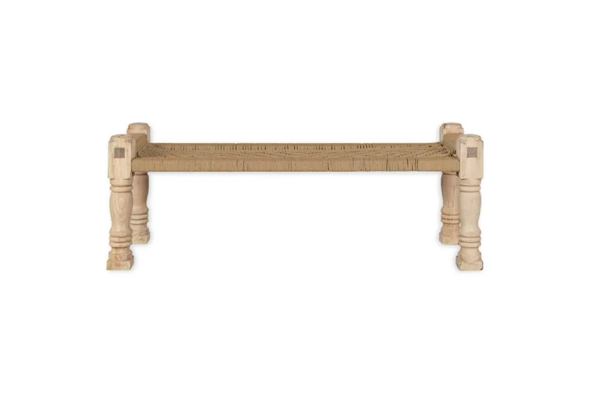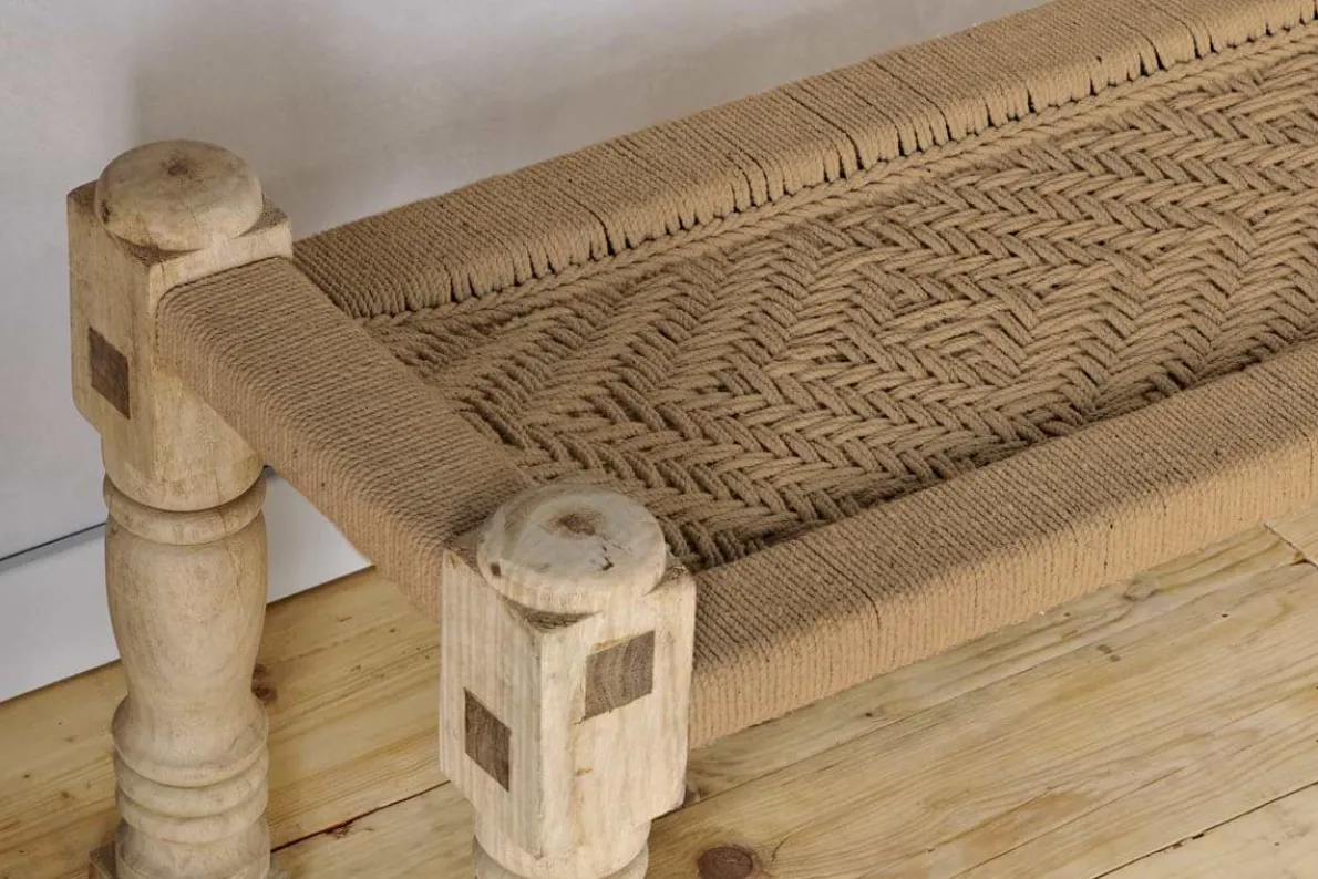 Our Kutumba bench is a characterful addition to a hallway, kitchen, living room or bedroom space, bringing a touch of traditional craftsmanship into the home. The sturdy mango wood legs have been hand-turned and support a woven jute seat that bears an elegant symmetrical diamond design. Jute is a great material as it is a rain-fed crop that has little need for fertiliser or pesticides. A natural vegetable fibre, it can be spun into strong and durable threads.