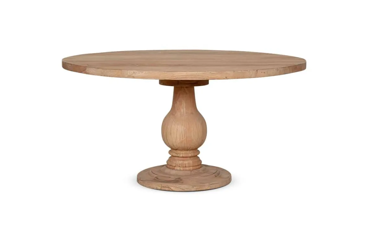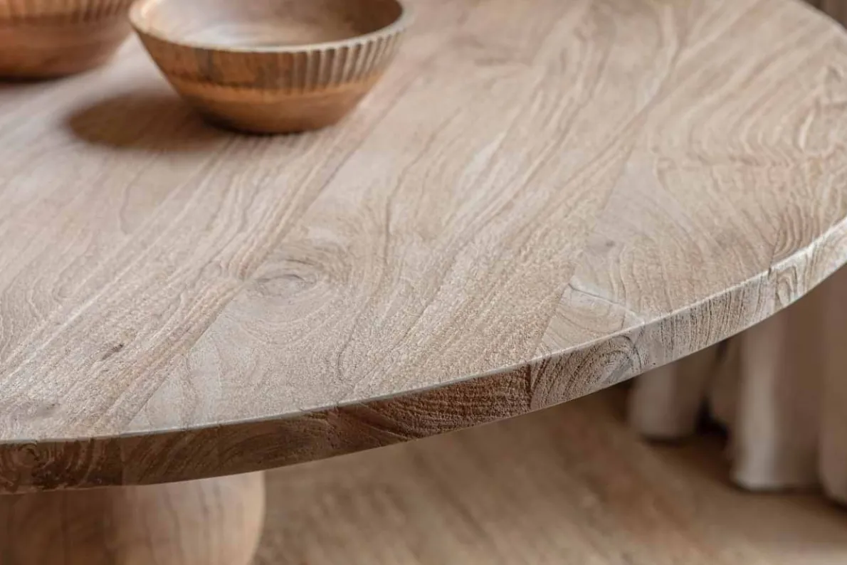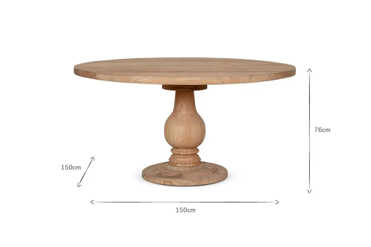 The simplicity and classic style of the 6-seater Laya table make it an effortless addition to a dining room or kitchen space. A beautifully hand-carved piece, the elegant base has a distinctive silhouette that is in harmonious balance with the generous proportions of the tabletop. The grain of the wood and naturally-occurring knots are highlighted in all their beauty with a raw finish that allows the subtle variations in tone, and the tactility of the wood to shine through. We find a circular table feels beautifully informal and creates easy, intimate gatherings.