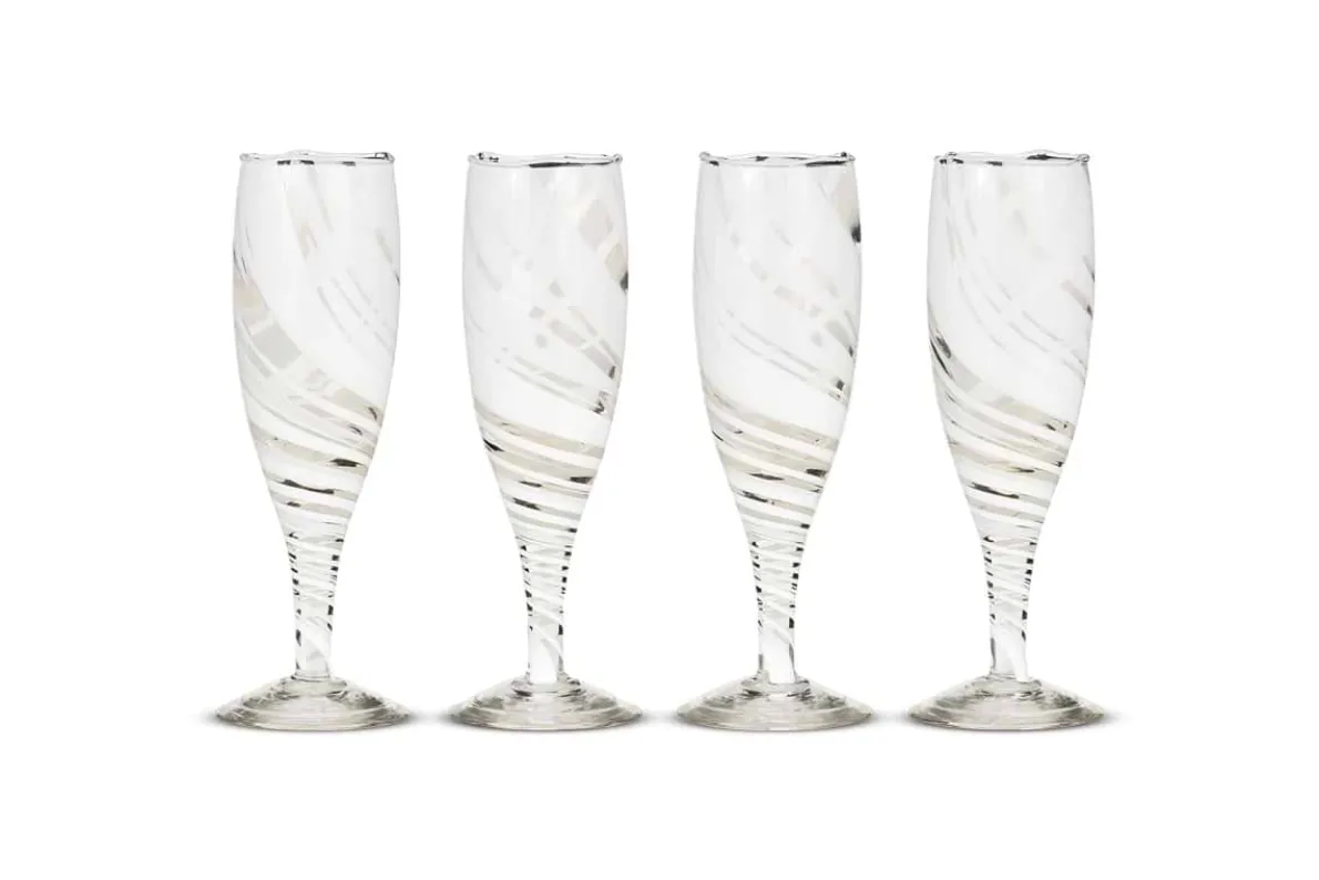 Each of our mouth-blown recycled glass Lohara champagne glasses are utterly unique – the patterns are made by mixing white-coloured glass pellets into the molten clear glass and seeing what emerges. Stylish, sturdy and beautifully textured, these make a fresh addition to your glassware collection, brightening up any table setting.