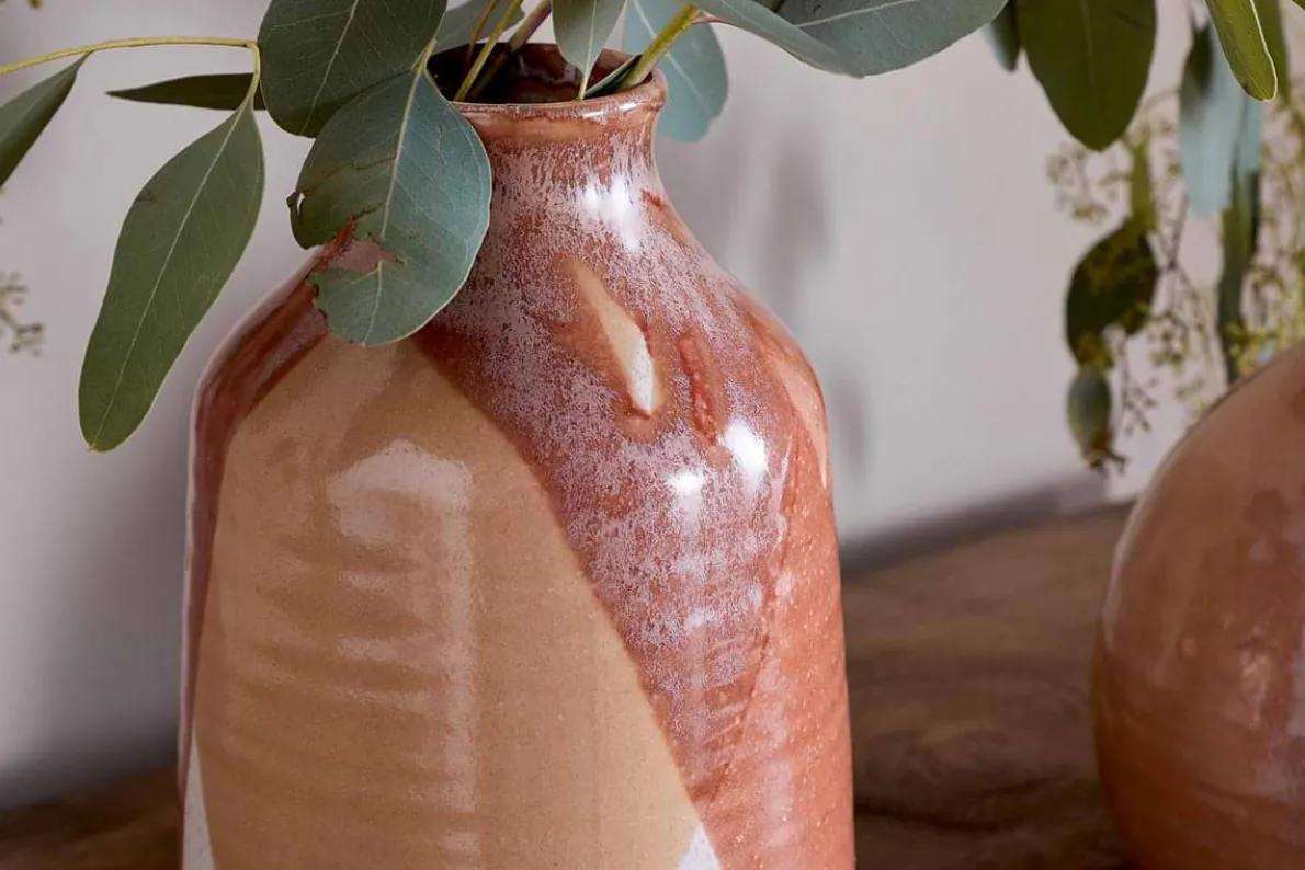 Bring a fresh look and feel to your home with our beautifully crafted Lucia Vase. The combination of tonal terracotta and neutral hues creates a soft, elegant design that complements any room. The inside of the vase has a double layer of glaze making it suitable for holding water and fresh flowers. Available in both small and large sizes, our Lucia vases can be styled alone or as a set, with or without flowers.