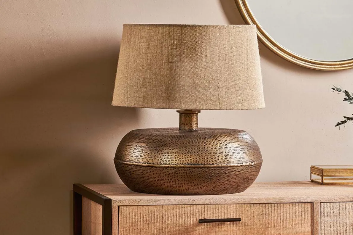 The Lumbu lamp has an interesting antique appearance derived from the honest, artisan techniques used to create it. The antique – brass finish enhances the tactile pattern in an understated and stylish manner. Each lamp comes with a black fabric cord. Complete the look with one our attractive lampshades.
