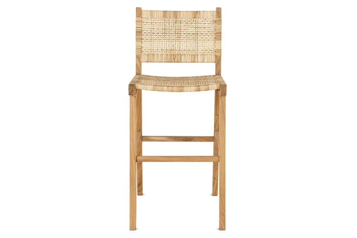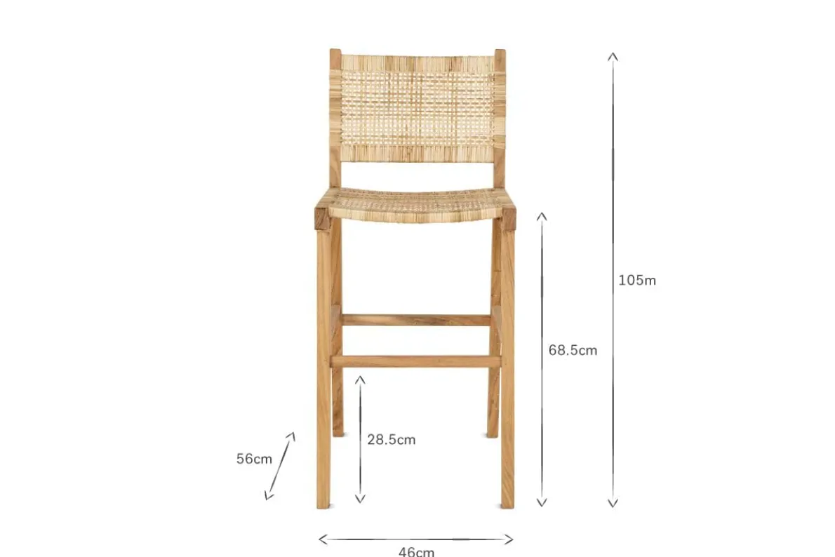 The soft natural tones of our Madrisana bar stool add a touch of pared back sophistication. The seat and back are intricately woven from rattan, a time-honoured process which involves a great deal of skill. The frame is crafted from acacia wood and is unpainted so the organic wood grain is on display. The traditional methods used to create this stool give it an appealing handmade quality. Both rattan and acacia are renewable materials which have minimal environmental impact, making this a sustainable choice and one which looks stylish around your kitchen island.