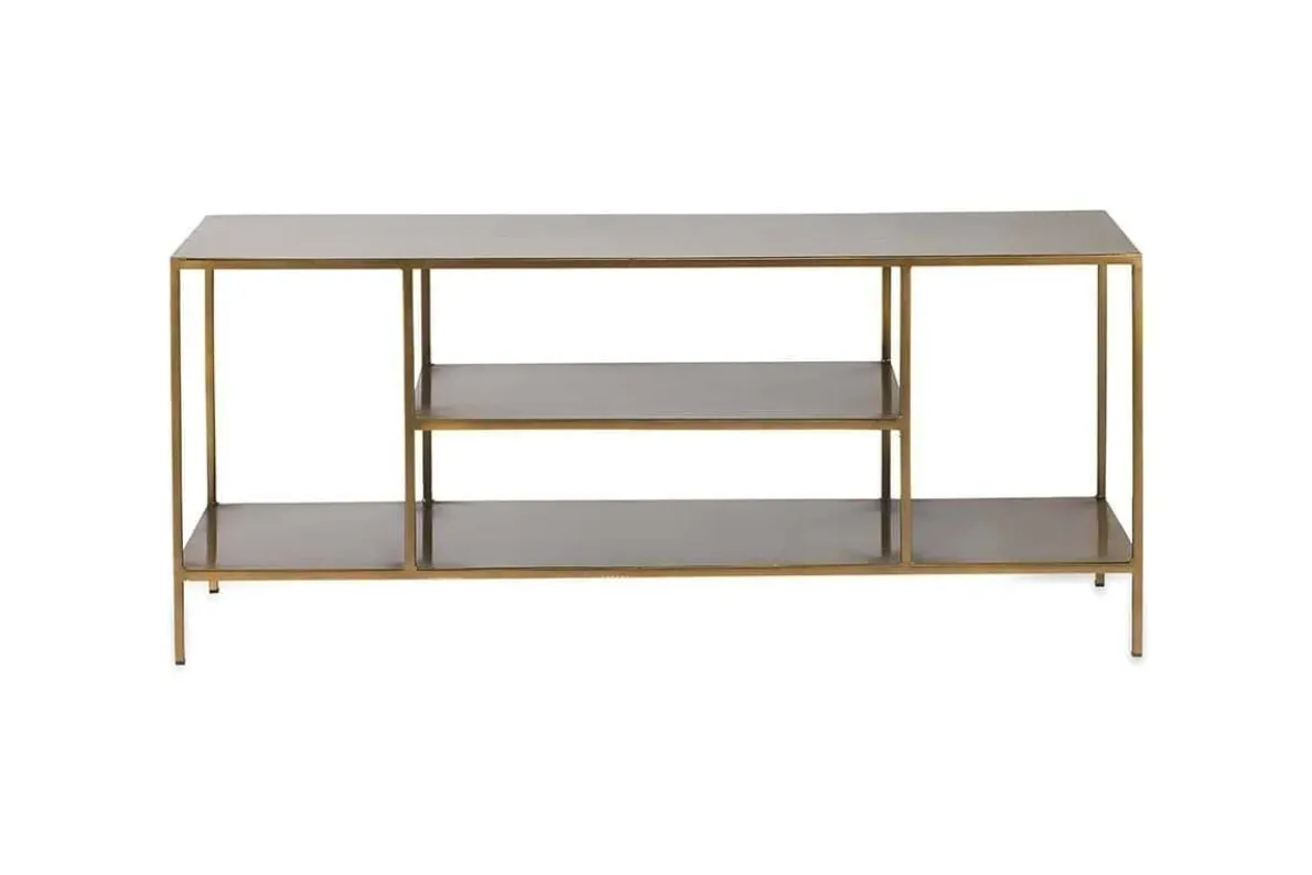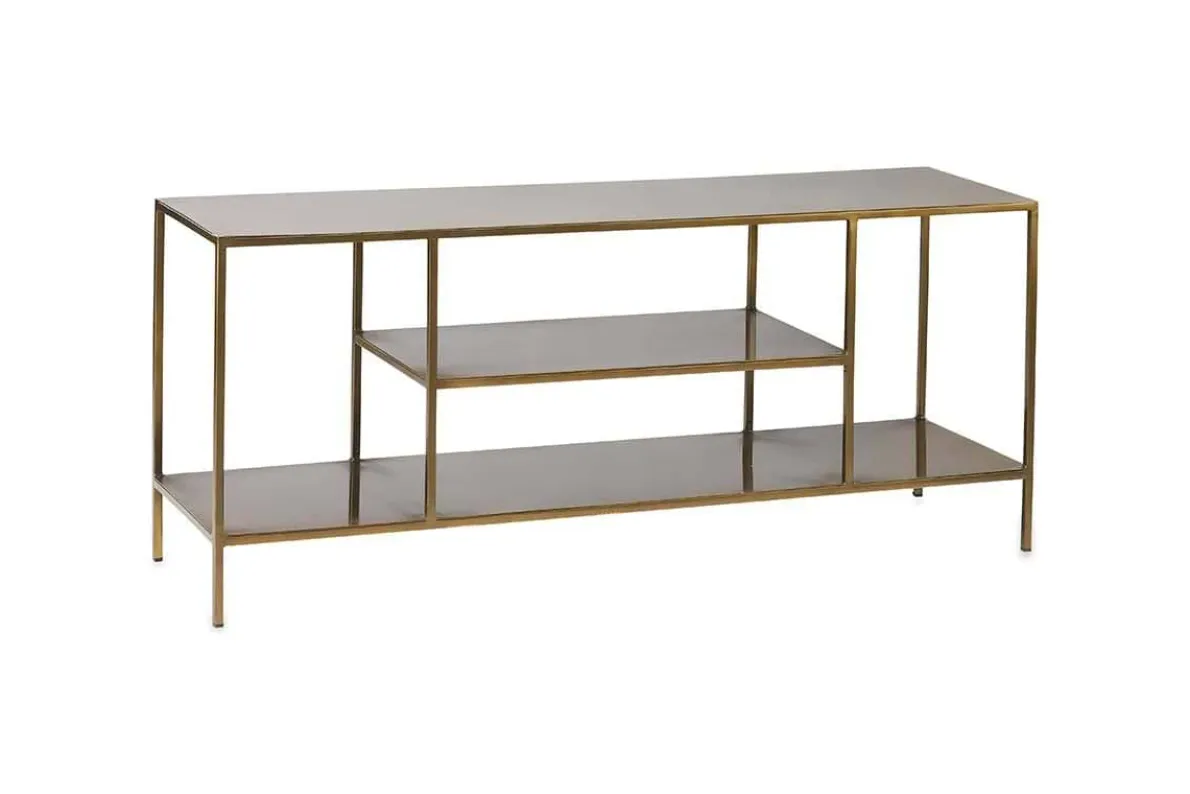 The striking Mahi media standing shelf means that you don’t need to compromise on style to house all your entertainment equipment. The elegant and slender frame divides into well-proportioned and practical shelves. The warm brass hues add an air of sophistication and interest.