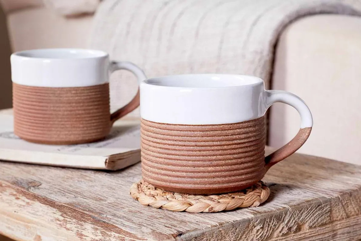 This ribbed terracotta coffee mug offers a fresh design take on our ever popular Mali collection. This ribbed detail provides a contemporary feel, while the white glaze freshens the look. This fair trades supplier never fails to astound us; the manufacturing techniques rely on a dedicated artisan team who skillfully hand create these tactile pieces for the home. Available in small and large.