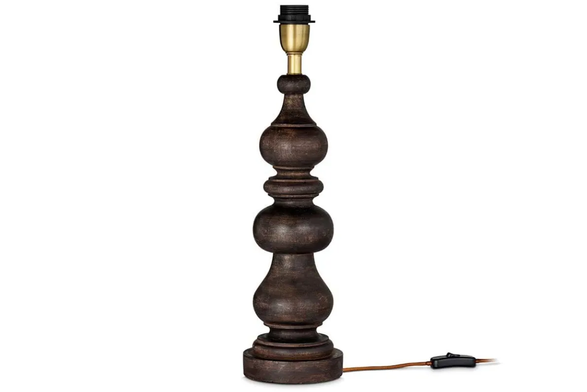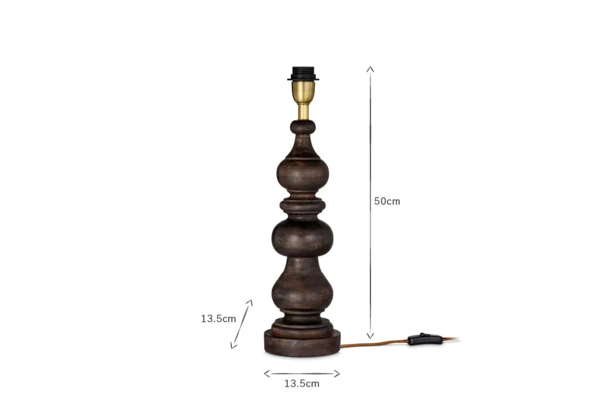 Classic and sophisticated, our Manua table lamp is handcrafted in India from mango wood, using traditional woodturning methods. Its elegant curves and warm dark palette give it a timeless quality which looks particularly stylish on a sideboard or console table. The lamp is finished with metal fittings in rich shades of antique brass, completing the luxurious look and feel. Mango wood is a sustainable material which is only harvested when the trees have stopped bearing fruit. Pair with our Dia jute lampshade for a striking aesthetic.