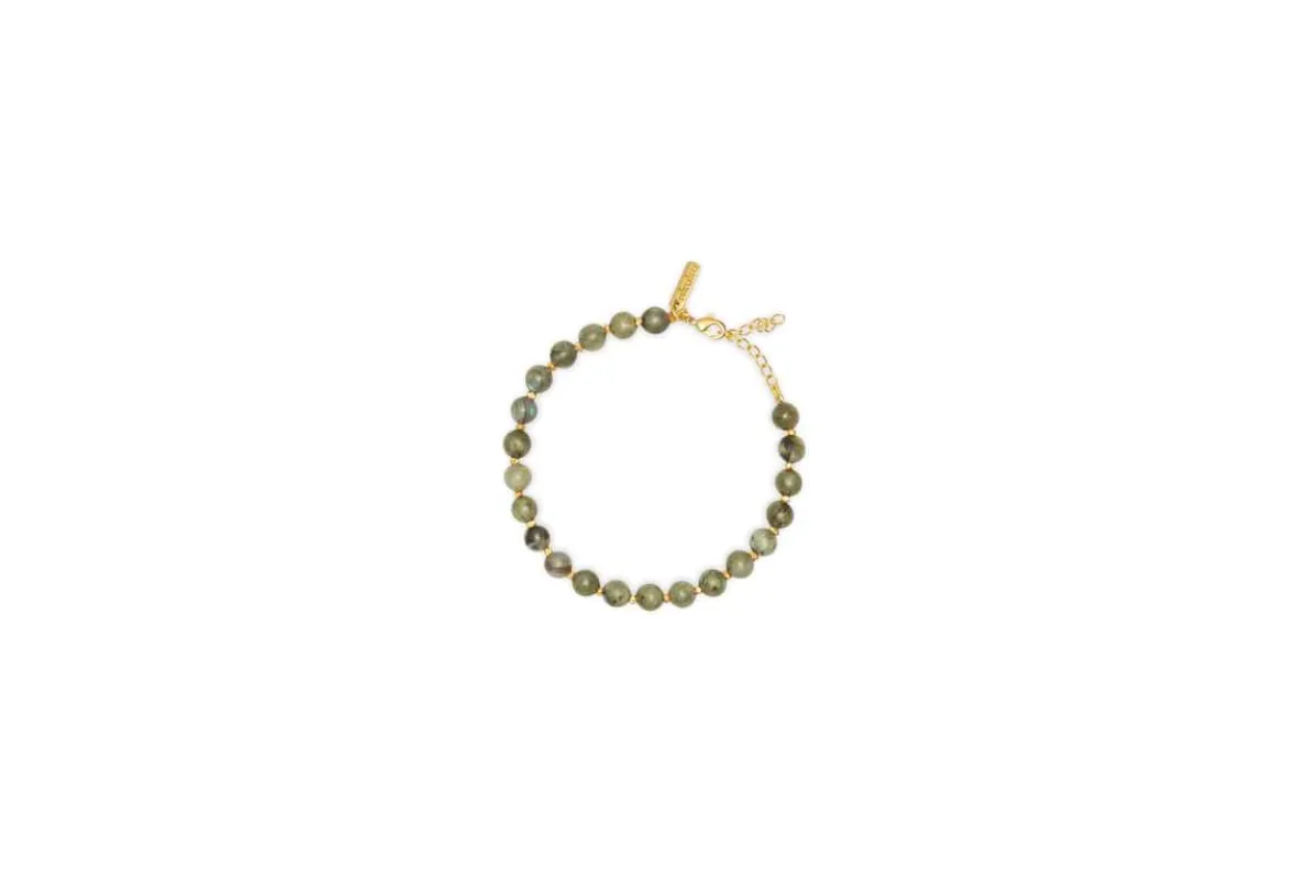 This elegant bracelet features shimmering labradorite beads in a new, refined beaded design. The natural tones and subtle iridescence of the stone create a soft, light-catching finish that pairs beautifully with both everyday looks and more polished styles. Presented in a linen pouch, it-s a timeless addition to your jewellery collection.