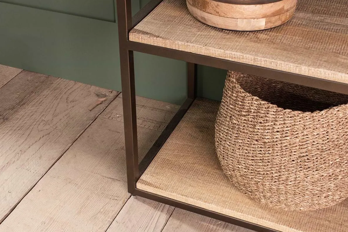 Our Marjori standing shelves are both practical and stylish. Warm iron and rich mango wood combine to create an eye-catching aesthetic which brings a sense of pared back sophistication to your home. We choose mango wood thanks to its sustainability – the mango trees are only cut down once they’ve stopped bearing fruit and their short growing cycle means farmers can plant more, providing them with a supplementary income. These shelves are perfect for larger spaces thanks to their wide design.