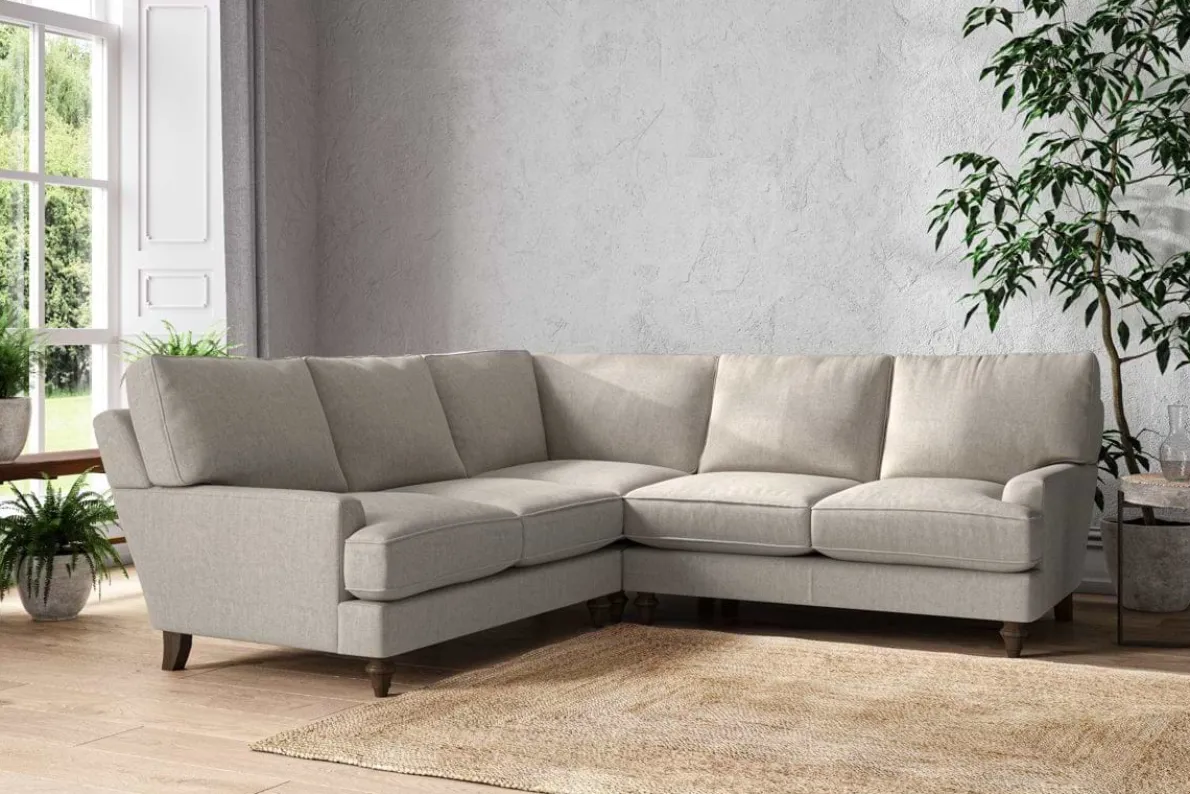 The classic design of our Marri large corner sofa has a timeless appeal that suits almost any interior. Each piece is handcrafted by our specialist team in our Nottinghamshire workshop combining traditional techniques with exceptional craftmanship. Well-considered details ensure lasting quality, including piped edging, separate back cushions, and hand-turned hardwood feet.