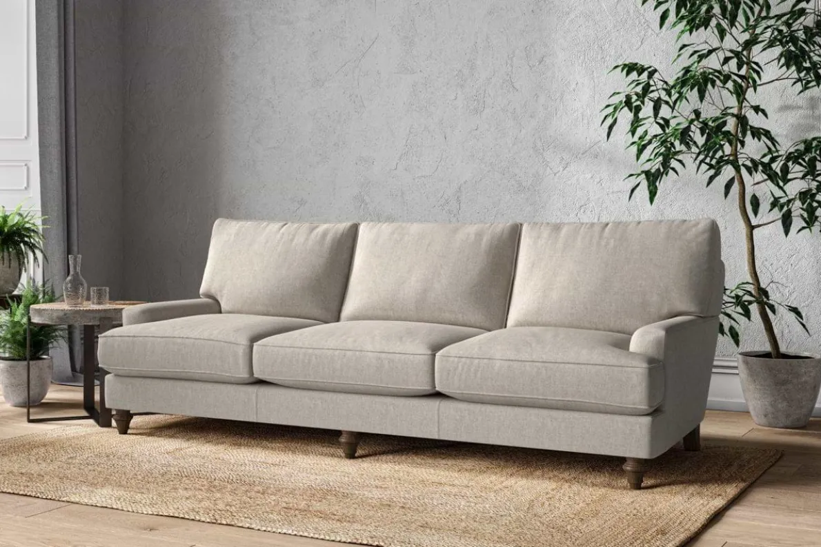 The classic shape of our Marri super grand sofa has a timeless appeal that suits almost any interior. Each piece is handcrafted by our specialist team in our Nottinghamshire workshop combining traditional techniques with exceptional craftmanship. Well-considered details ensure lasting quality, including piped edging, separate back cushions, and hand-turned hardwood feet.