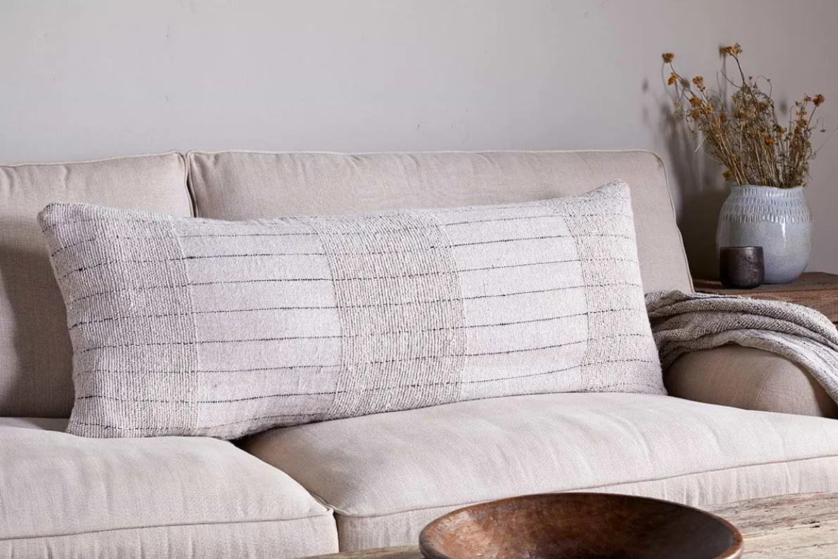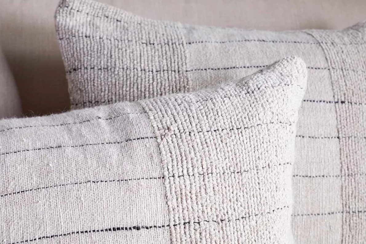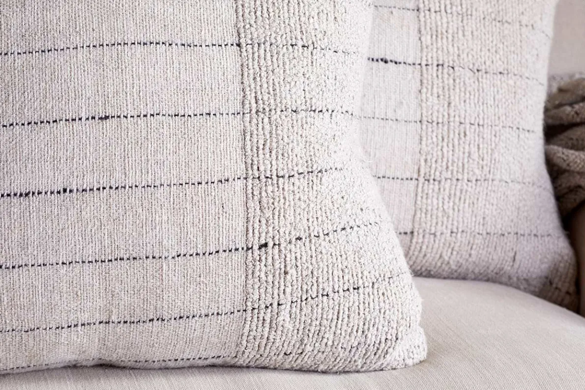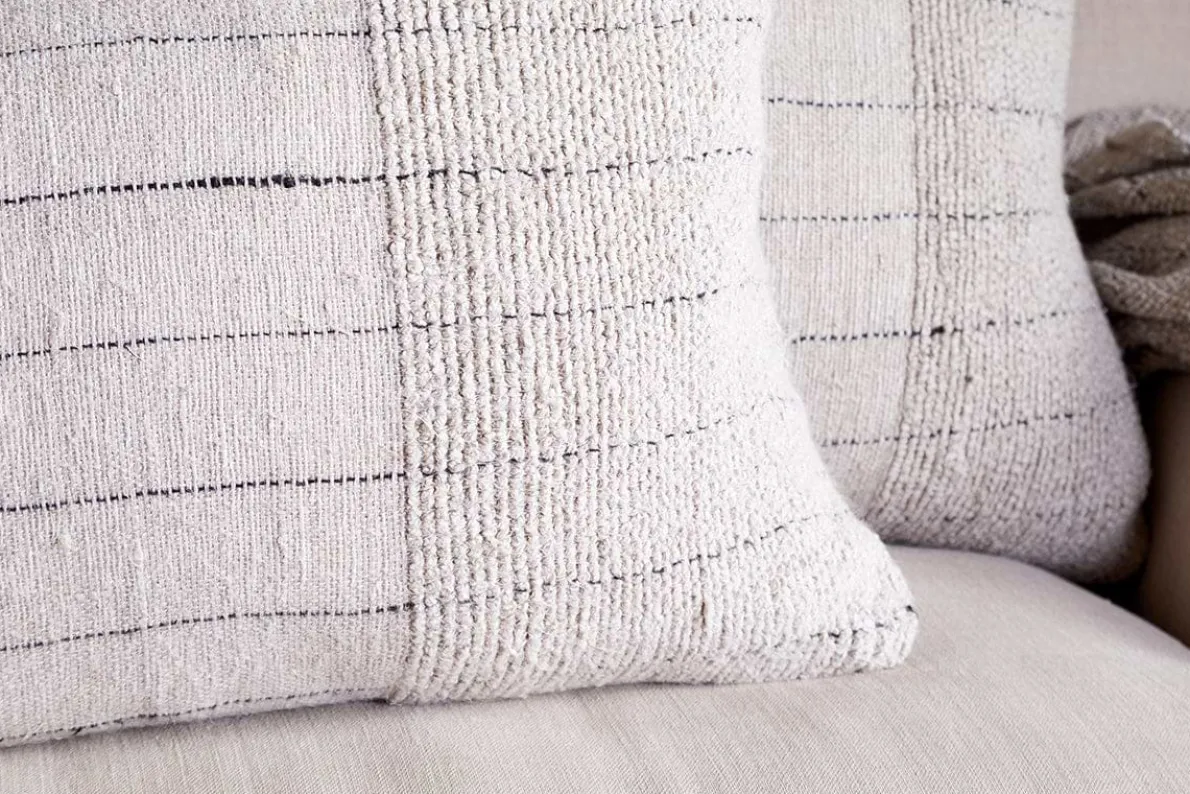 Our Mayla cushion covers are handwoven from a linen and a touch of cotton, in a laid back design and texture. The neutral tones are enhanced with a series of simple hand stitched black lines creating a subtle pattern. Style with our home furnishings. Pair with our Mayla throw.Our feather cushion inners will accompany your cushion cover perfectly. Please note, the size of the cushion inner will display slightly larger than our cushion covers to allow for a plump finish when put together.