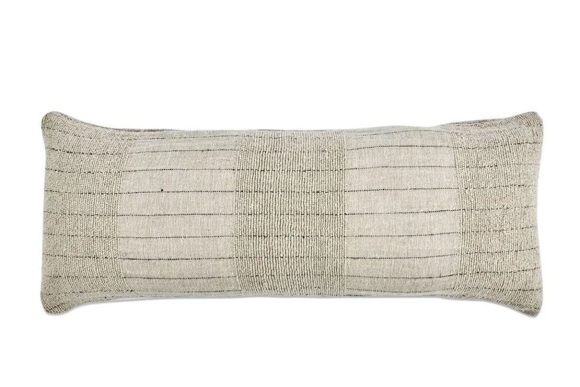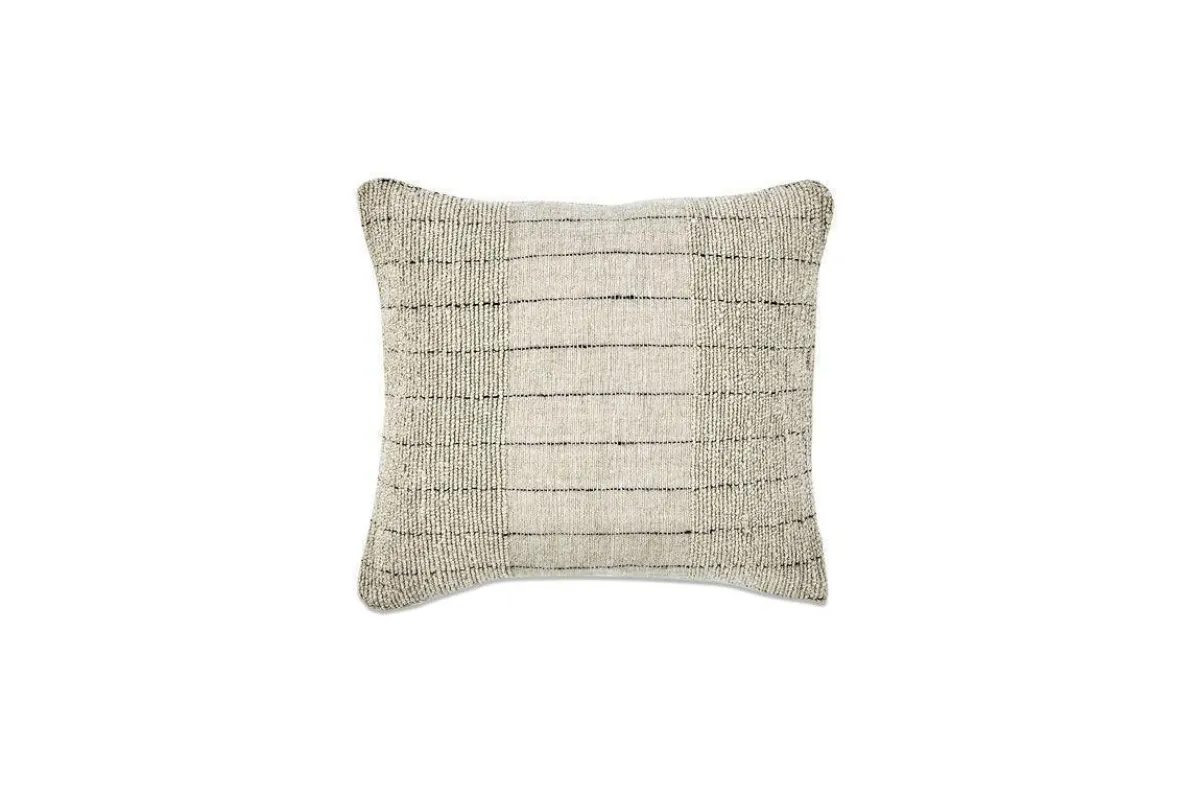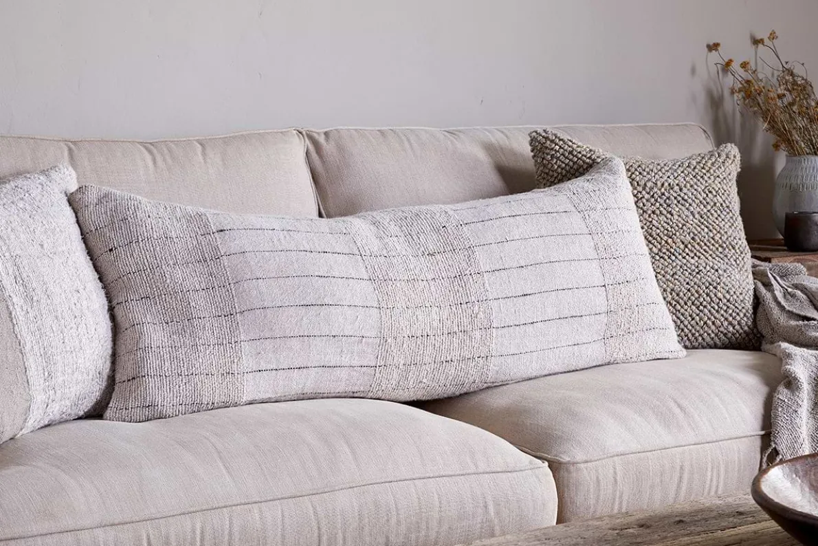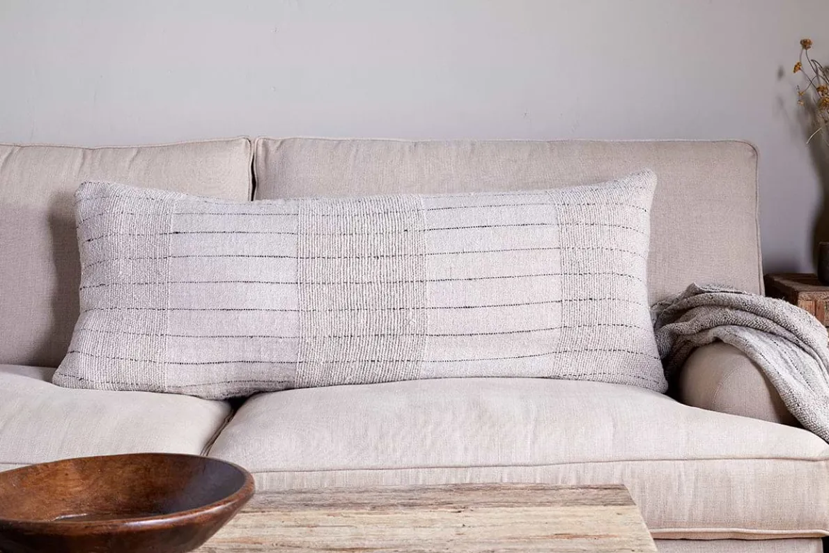 Our Mayla cushion covers are handwoven from a linen and a touch of cotton, in a laid back design and texture. The neutral tones are enhanced with a series of simple hand stitched black lines creating a subtle pattern. Style with our home furnishings. Pair with our Mayla throw.Our feather cushion inners will accompany your cushion cover perfectly. Please note, the size of the cushion inner will display slightly larger than our cushion covers to allow for a plump finish when put together.
