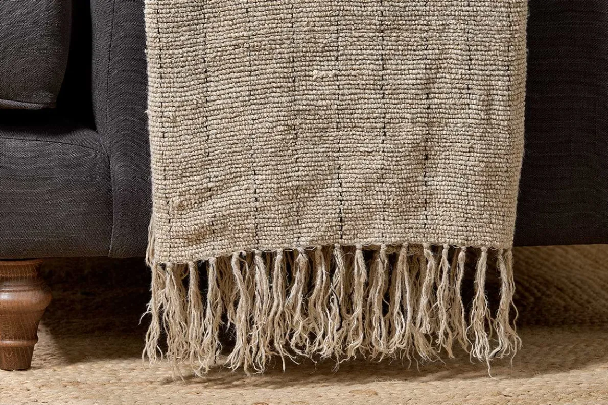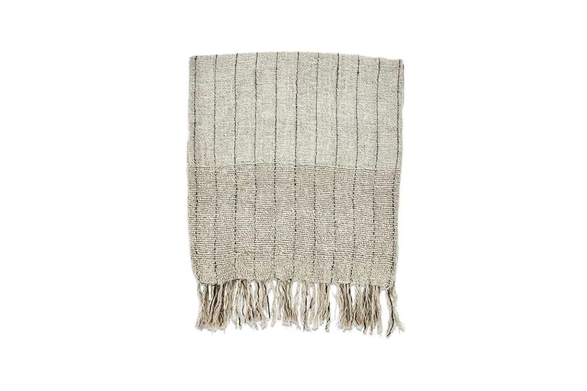 The subtle texture of this tactile cotton and linen Mayla throw is enhanced by the neutral tones and faint charcoal stitching work. Layer across the back of a sofa or armchair. Style with our Mayla cushions.