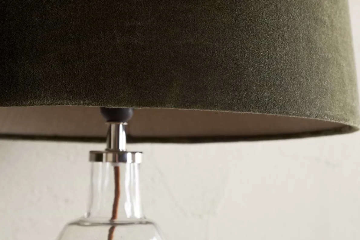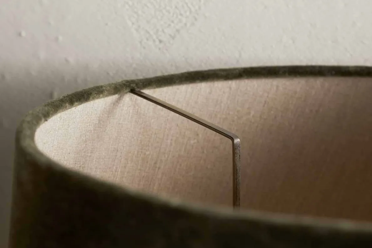 Blending the soft sheen of velvet with the natural texture of linen, this lampshade offers a subtle contrast and a tactile finish. Its gently woven fabric allows light to filter through beautifully, creating a warm, diffused glow. The rich colour palette adds bold elegance, making it a striking feature in any interior.