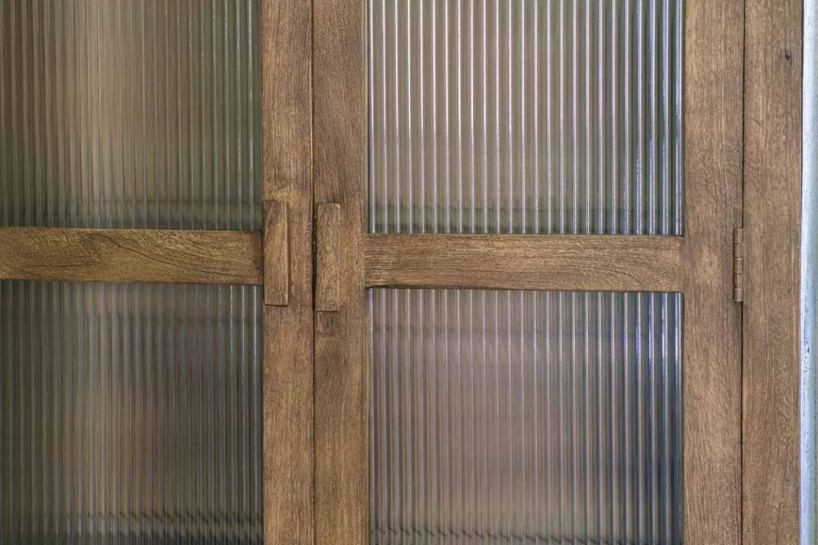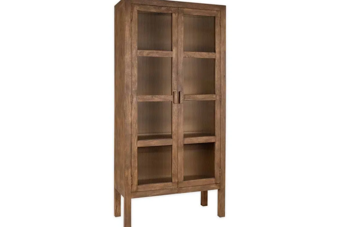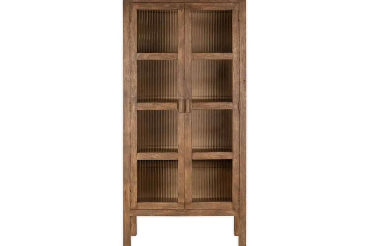 Our timelessly elegant Medani cabinet, with a deep walnut finish and fluted glass, is a beautifully versatile piece that we envisage as an heirloom item. Use as a freestanding kitchen cabinet to store crockery, place in a living space to display a selection of favourite objects or position in a bathroom for linen and towels. The fluted glass creates an extra point of interest and gives the overall piece a sophisticated antique feel. The wood and tempered glass have been treated to withstand the moisture of a bathroom setting. A low cabinet is also available.