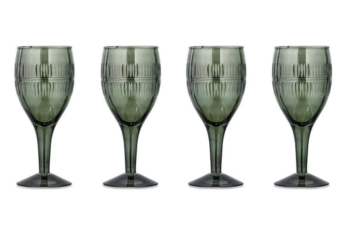 The graceful design of these Mila wine glasses iss enhanced by its clear glass tone. The etched pattern adds a stylish decorative detail. Each one is made from recycled glass in this sophisticated design.