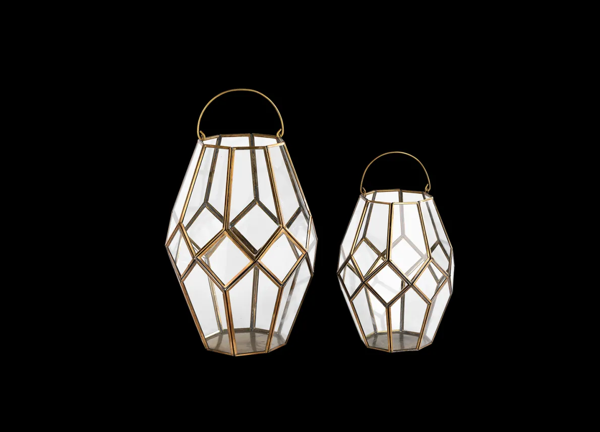 We love the asymmetric design of these brass lanterns. The rich coloured brass gives them an antique finish, each one is hand welded to fit the individual glass windows. This timeless lantern looks beautiful in any setting.