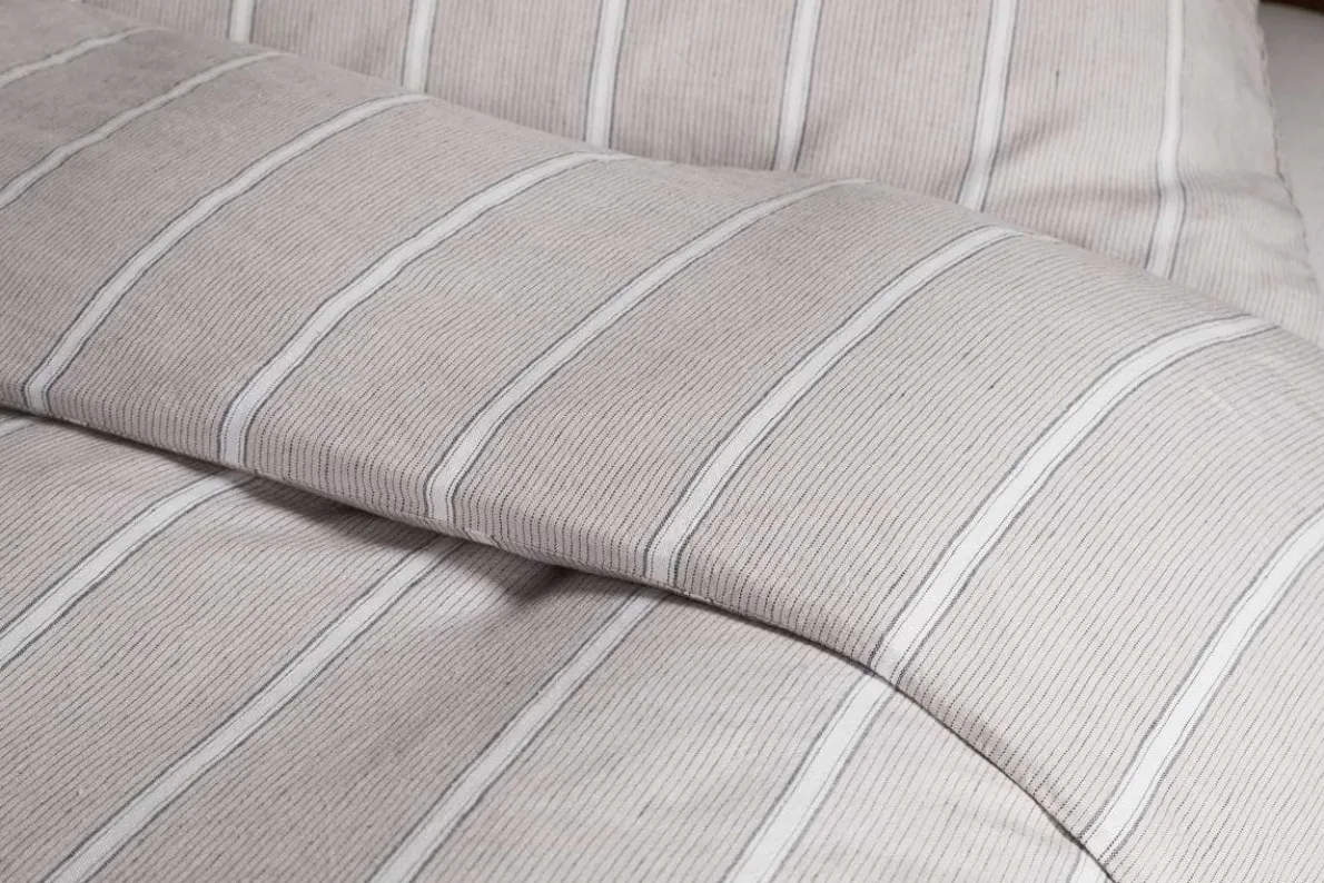 Made in Portugal from a blend of hemp and organic cotton, this duvet cover is naturally breathable, soft, and designed to improve with every wash. Hemp is known for its durability and low-impact growing process, while organic cotton adds gentle comfort to the weave. Finished with a muted grey stripe, this duvet cover offers a refined, easy-to-style look, crafted with care from considered materials. Each piece is neatly packaged in a fabric bag which makes for easy storage, or could alternatively be used as a garment bag.