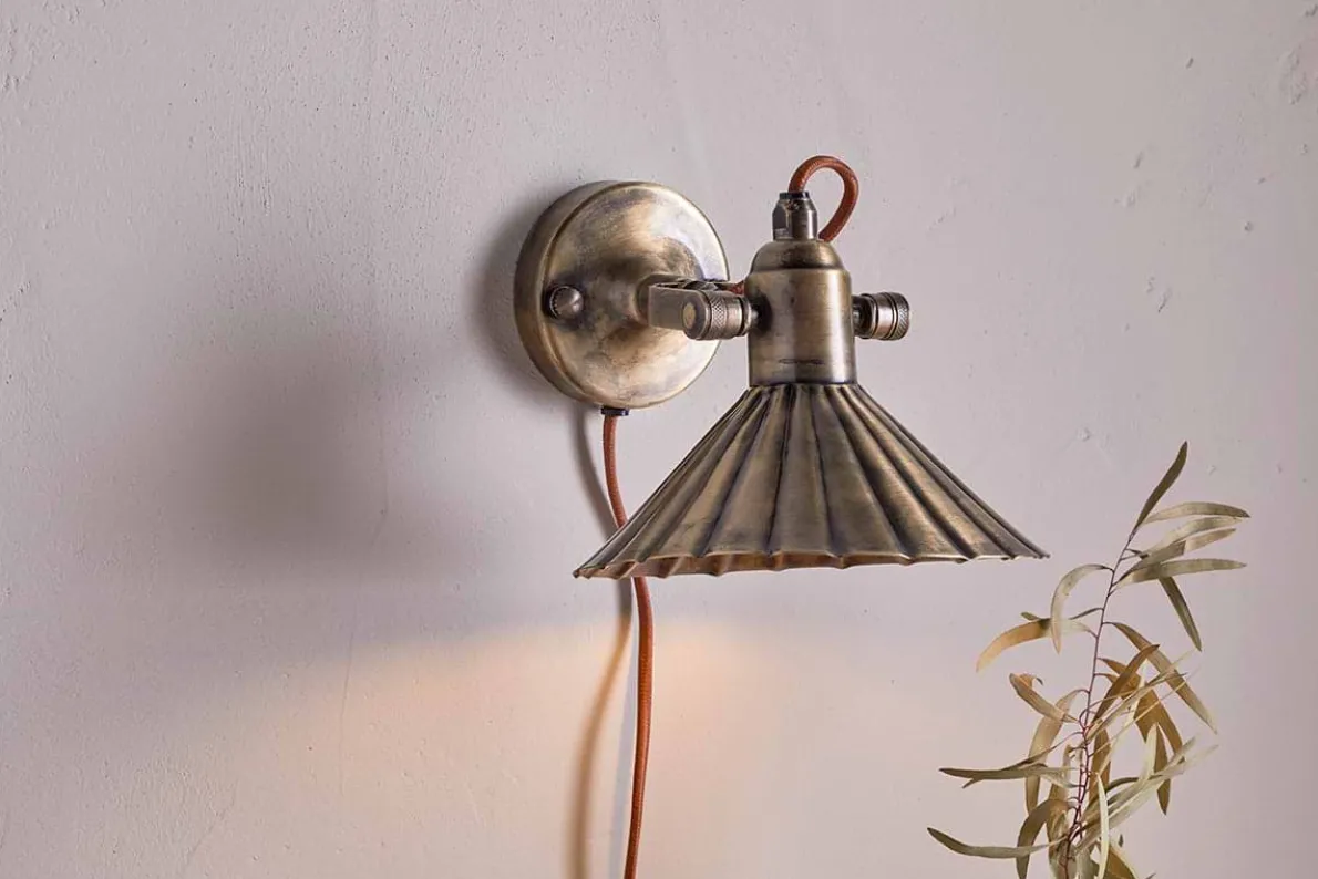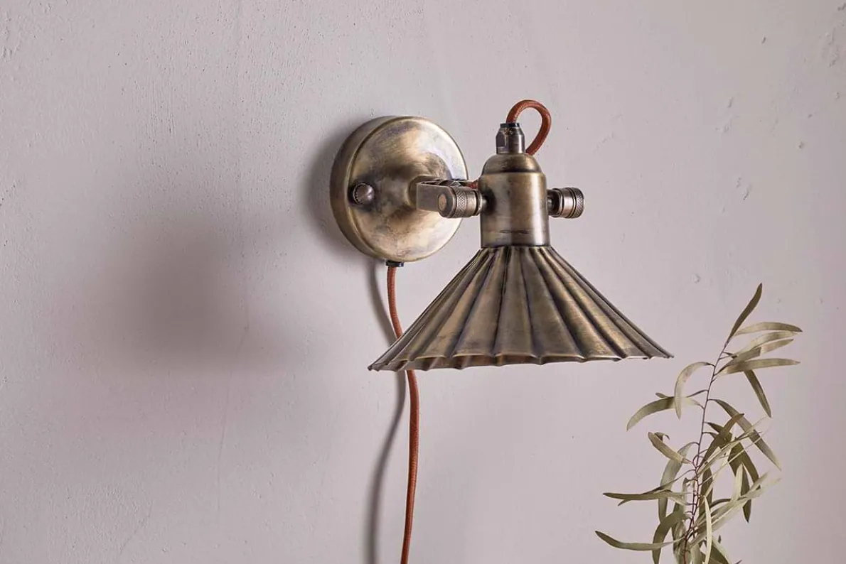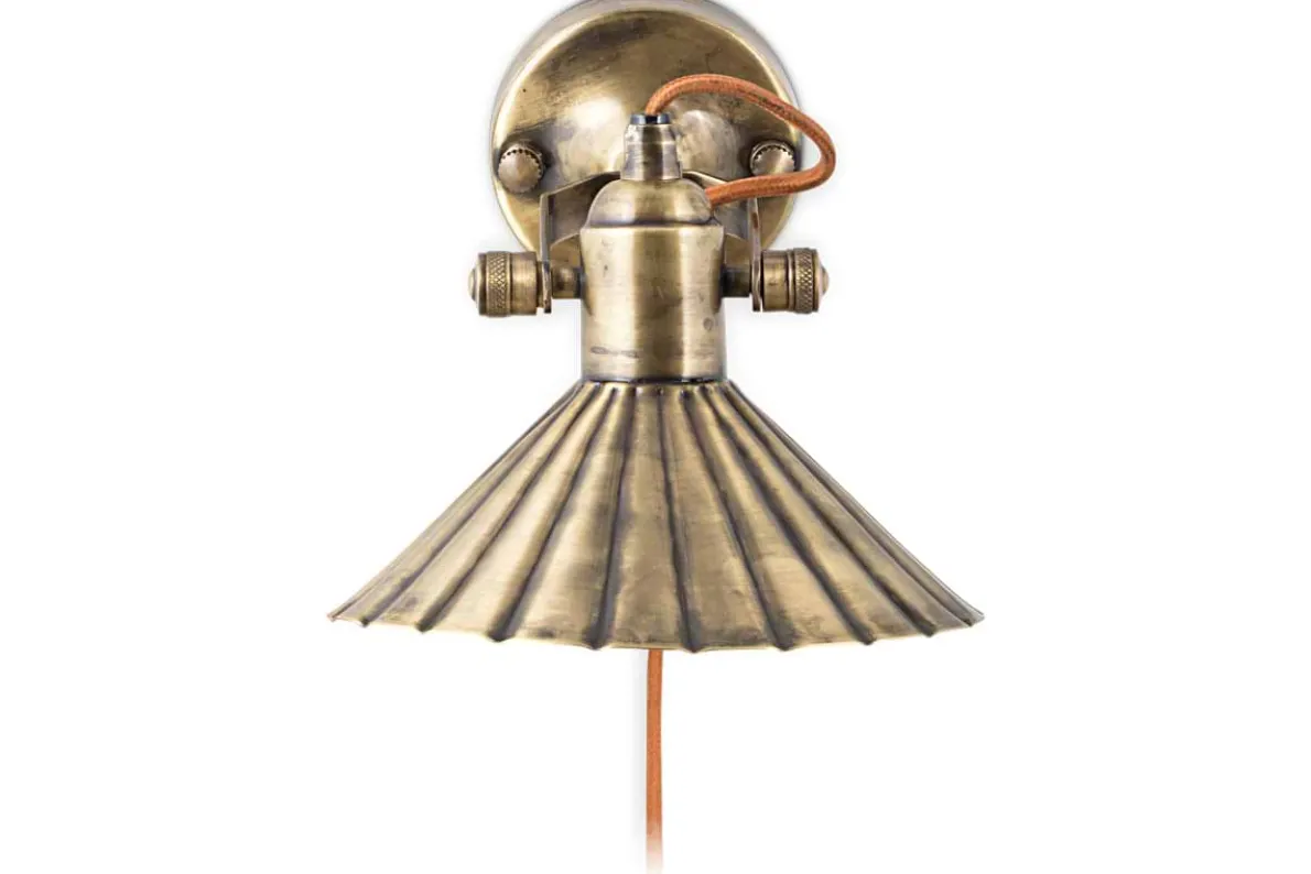 The eye-catching Moti Wall Lamp adds an attractive finishing touch to a bedside setting or makes the perfect directional light in a reading nook, or anywhere where directional light is required. The solid brass, handmade metal work has been etched for texture and interest, creating a truly unique piece. It is perfect for creating an easy decor update as the plug-in feature means no electrician is required to get it up and running.