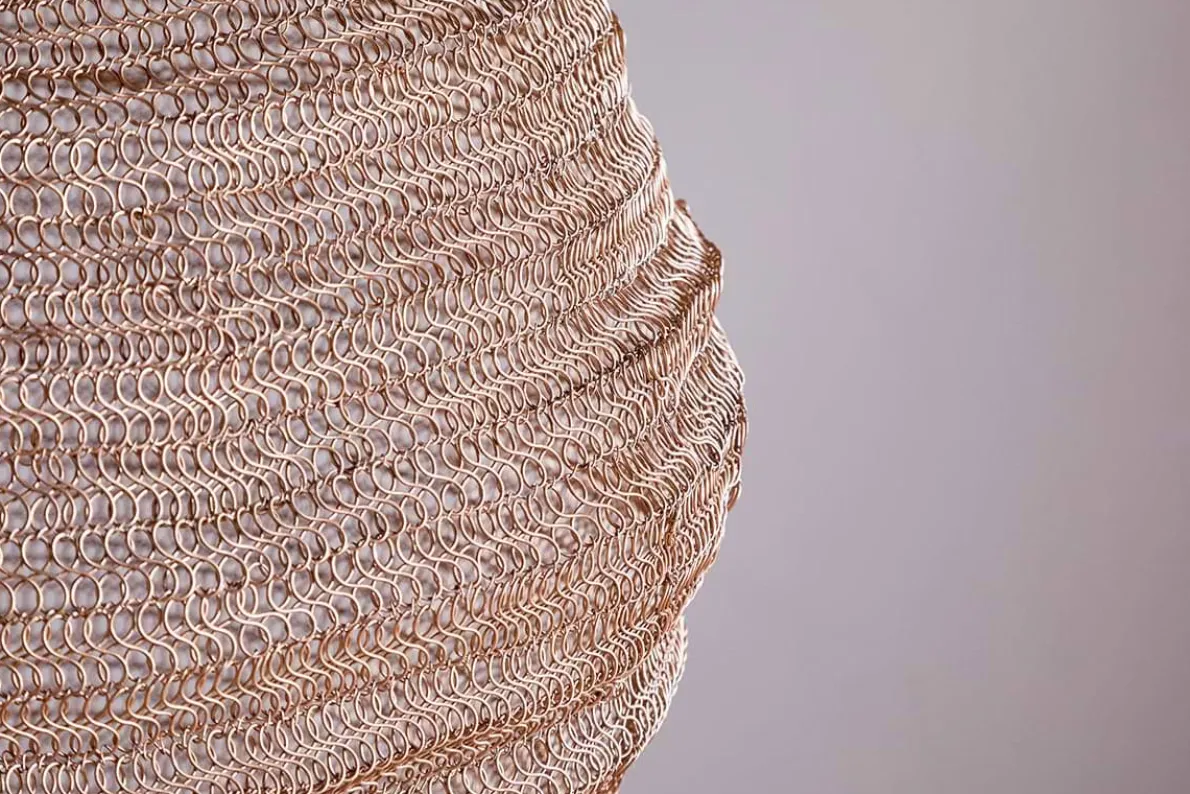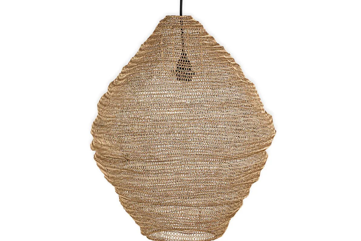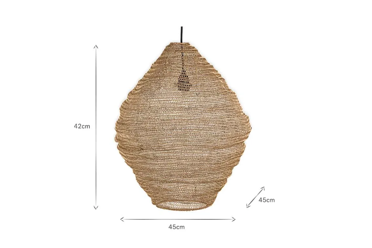 Hand-sculpted from wire in a striking organic shape, our Mukuni wire lampshade has a linked design which is beautifully complemented by an attractive brass finish. This unique combination of soft curves and industrial elements, style and texture, adds character to any space. The carefully crafted weaves allow light to diffuse gently, creating a warm and inviting atmosphere. Ideal for your living area or workspace, the Mukuni lampshade brings modern elegance to your decor. Available in small.