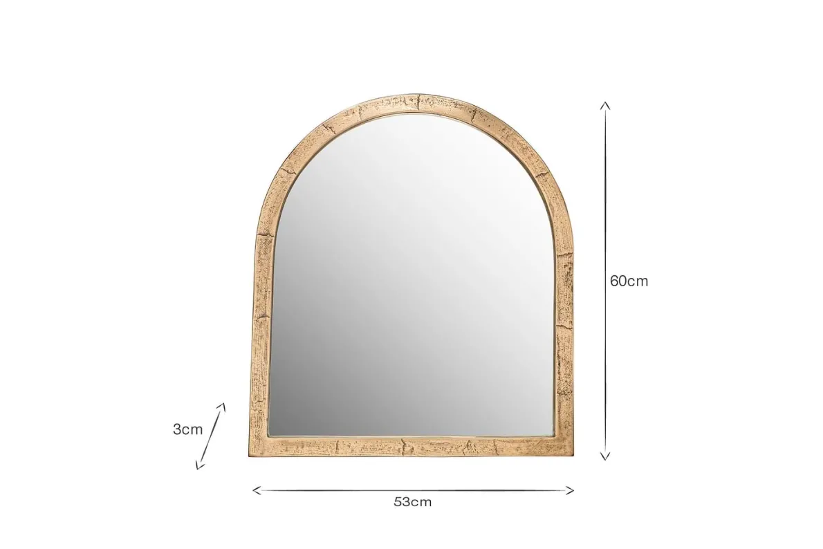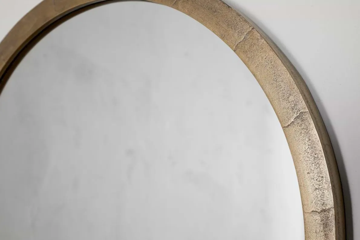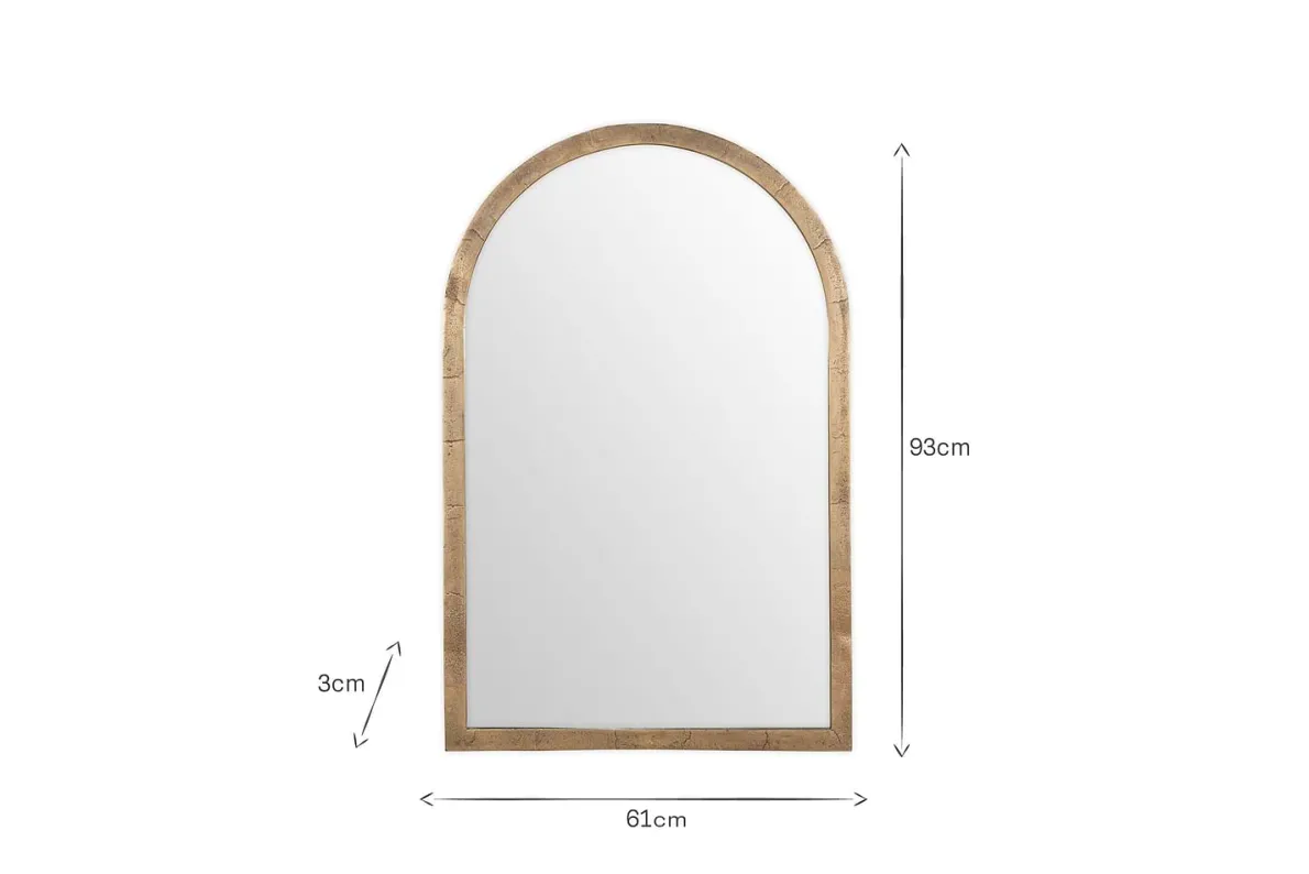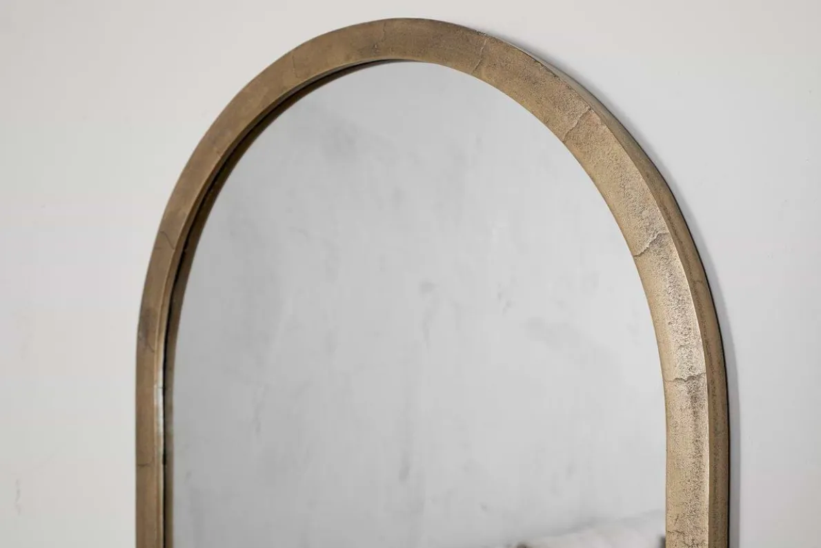 With its bold arched silhouette and generous scale, the large Murwara mirror makes a striking statement. The textured frame in a warm antique brass finish brings depth and character, while its clean, curved lines add a refined architectural feel. Perfect for bedrooms, hallways or living spaces, it enhances light and creates a sense of space with effortless style.