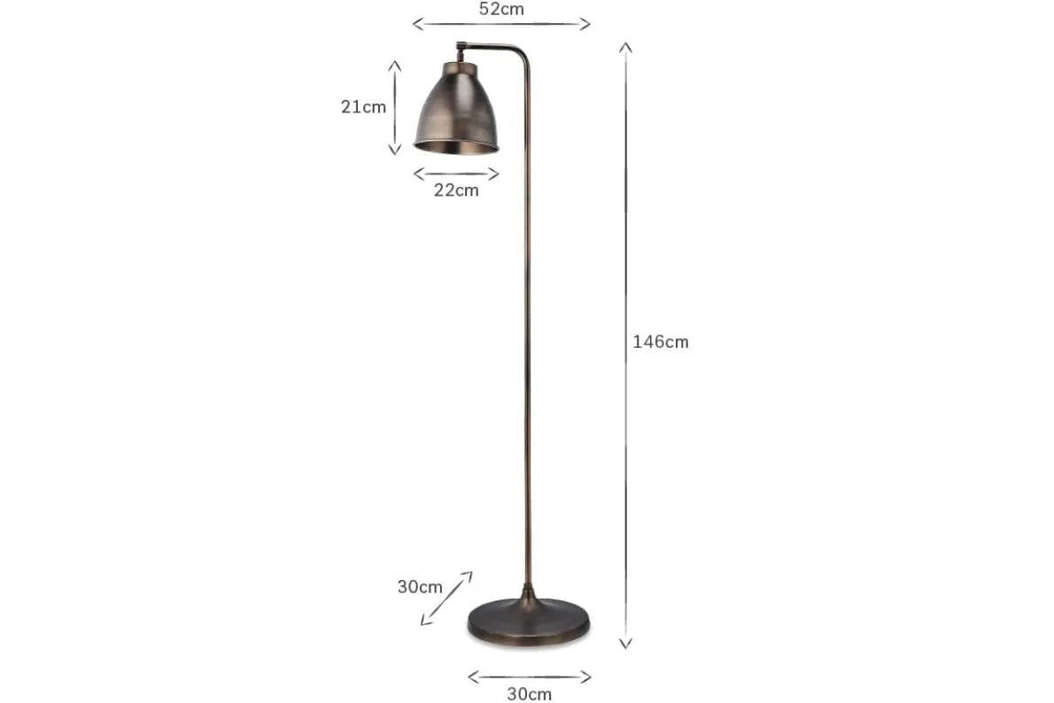 The warm aged bronze patina of our Muturi Floor Lamp blends simple clean design with solid brass. This striking floor lamp has a solid brass shade making it a stylish down light, ideal for positioning beside an armchair or sofa end.