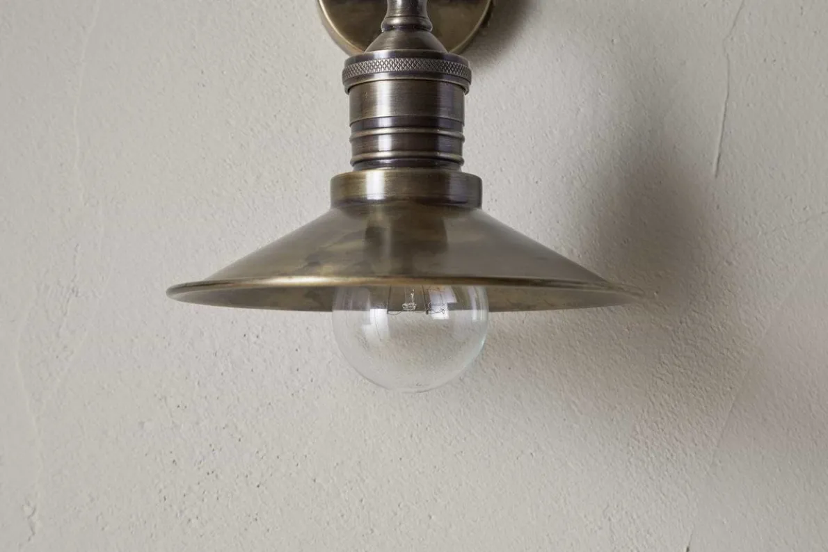 With its warm antique brass finish and classic wide shade, this wall light adds a touch of understated opulence to any space. The simple, timeless design makes it both stylish and versatile, equally suited to hallways, bedrooms, or living areas. It casts a soft, inviting glow, bringing warmth and elegance to a variety of interiors.